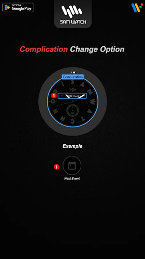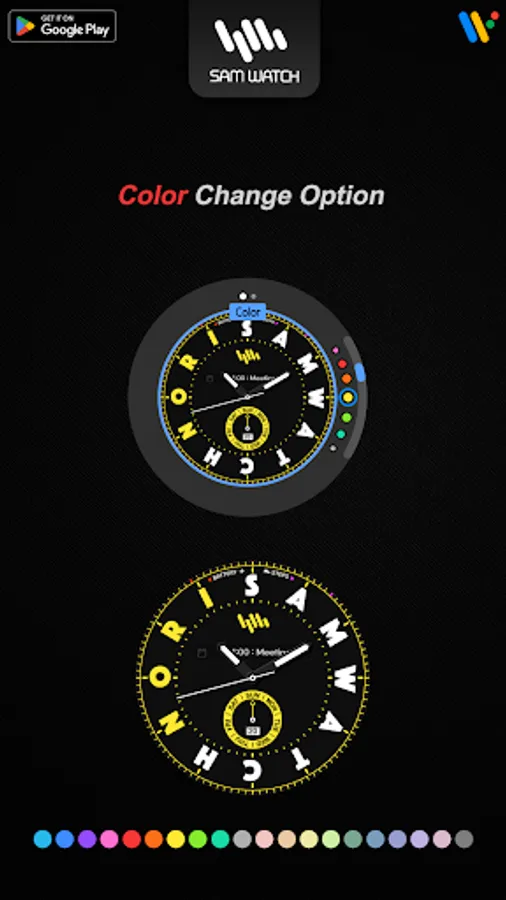 *The smartphone app is an additional app in the Watchface app that explains the download guide. It may be different from the watchface screenshot of the smartphone app and the watchface screenshot that actually downloaded. Most of SamWatch's Watchface app products include ap