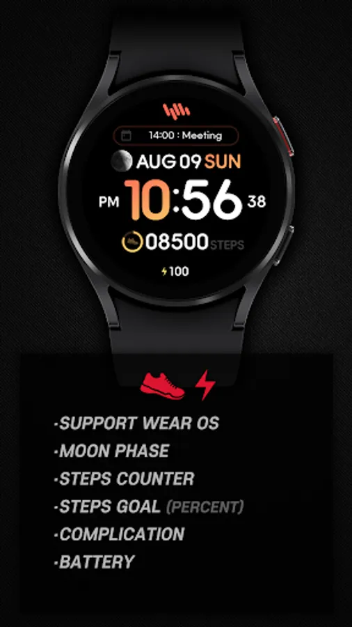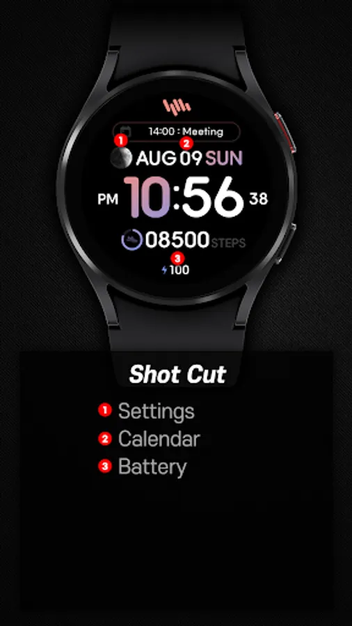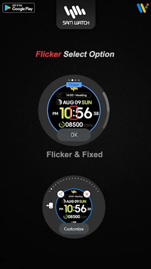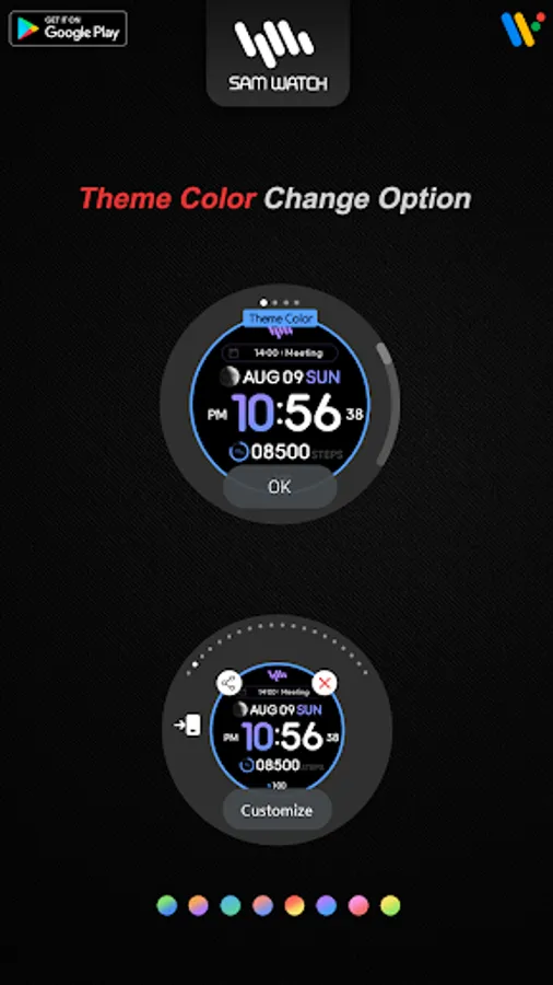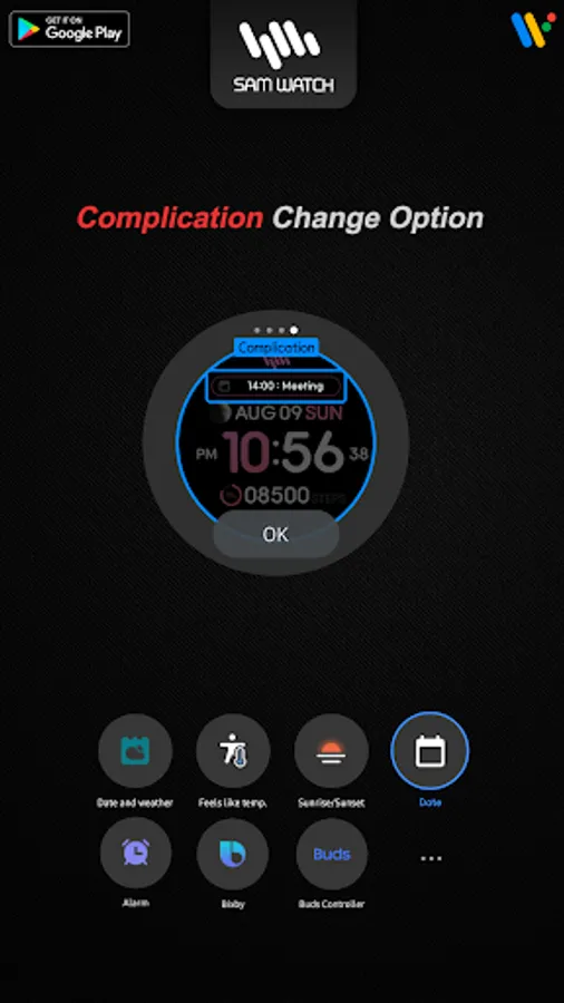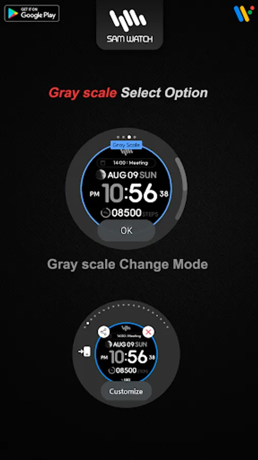 *The smartphone app is an additional app in the Watchface app that explains the download guide. It may be different from the watchface screenshot of the smartphone app and the watchface screenshot that actually downloaded. Most of SamWatch's Watchface app products include apps for smartphones.