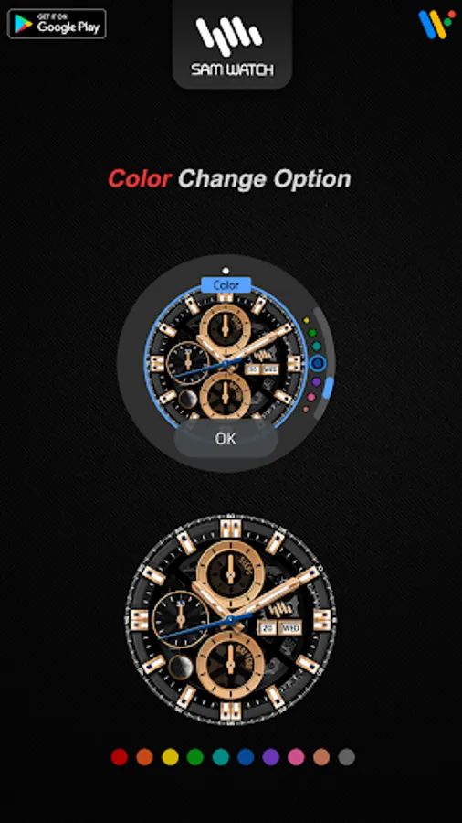 *The smartphone app is an additional app in the Watchface app that explains the download guide. It may be different from the watchface screenshot of the smartphone app and the watchface screenshot that actually downloaded. Most of SamWatch's Watchface app products include apps for smartphones.