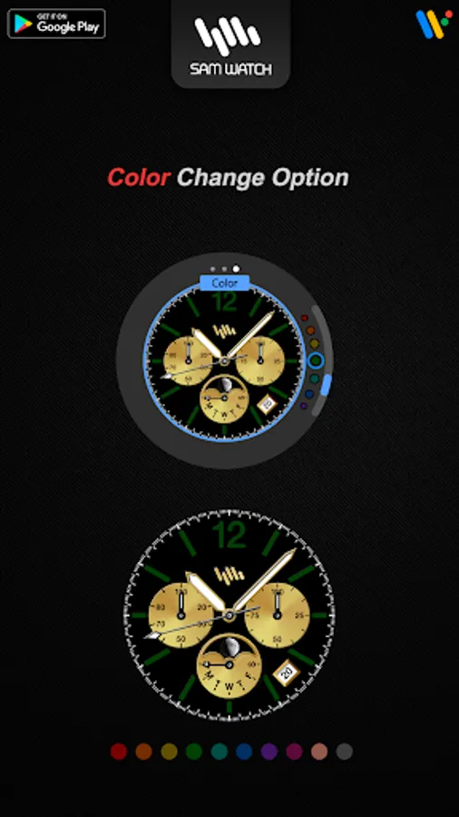 *The smartphone app is an additional app in the Watchface app that explains the download guide. It may be different from the watchface screenshot of the smartphone app and the watchface screenshot that actually downloaded. Most of SamWatch's Watchface app products include apps for smartphones.