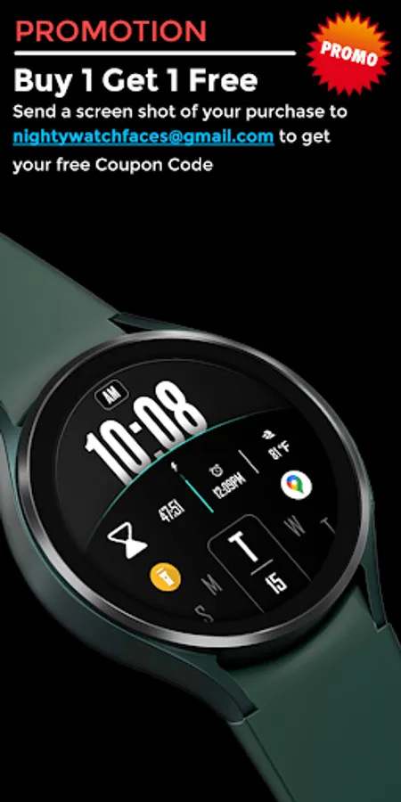 Send a screenshot of your purchase to nightywatchfaces@gmail.com to get your free promo code