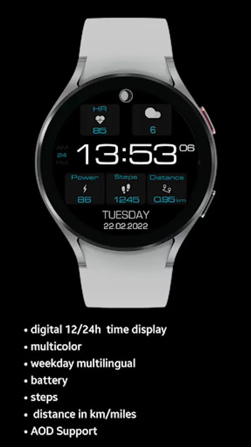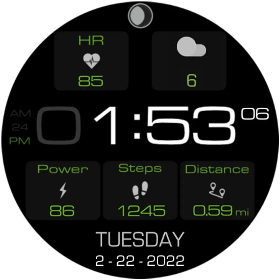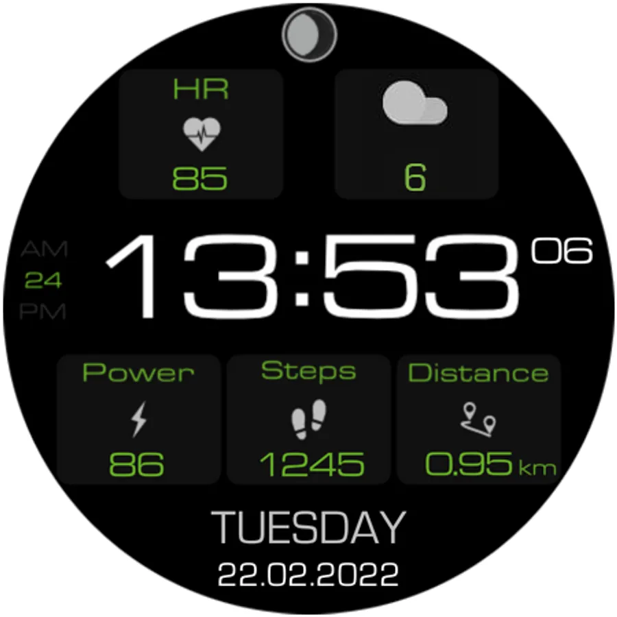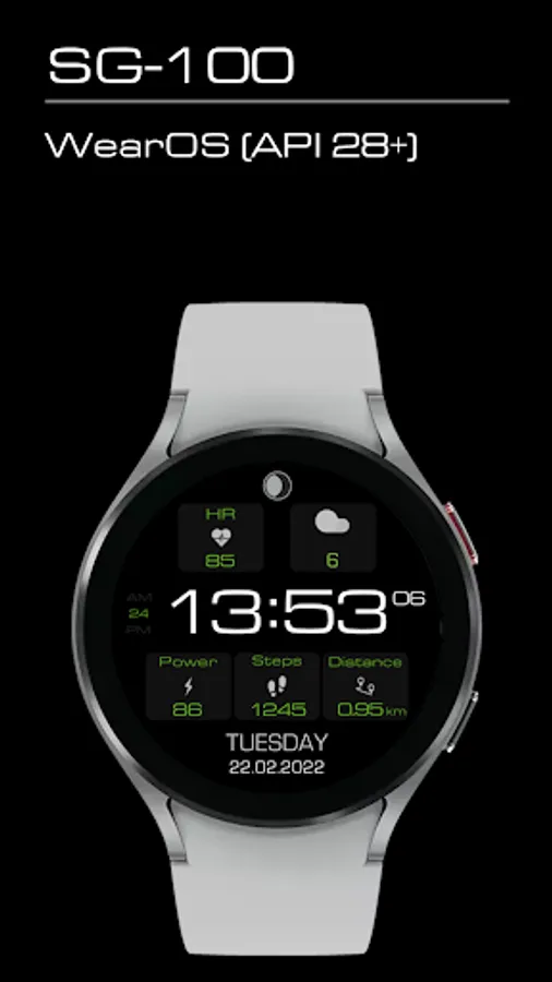 SG-100 is a simple clean, beautiful digital Watchface with health data, high readable and sharp clear graphics for WearOS by SG WatchDesign