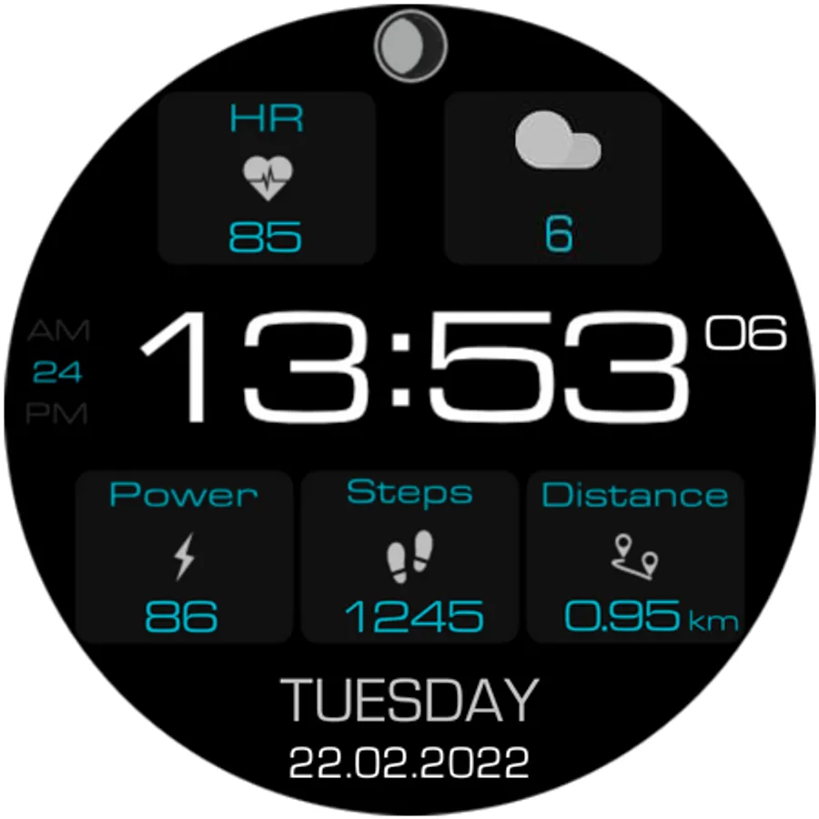 For example, you can select weather, steps, time zone, sunset/sunrise, barometer, next appointment and more.