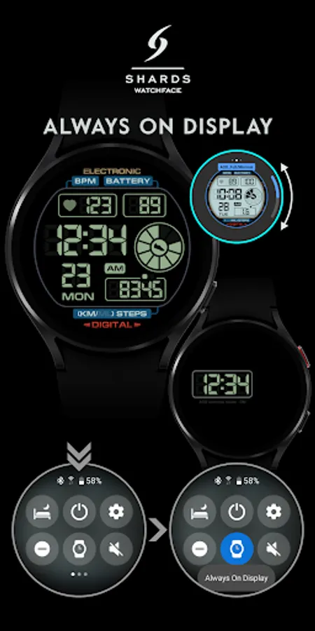 Shards is the perfect choice of watch faces for Wear OS smartwatches.