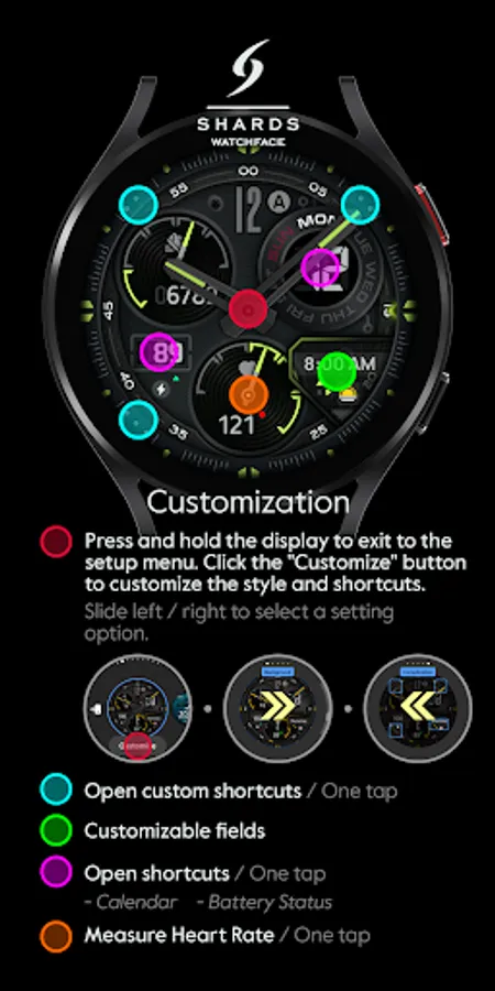 Shards is the perfect choice of watch faces for Wear OS smartwatches. Analog, digital, hybrid watch faces for your watch.