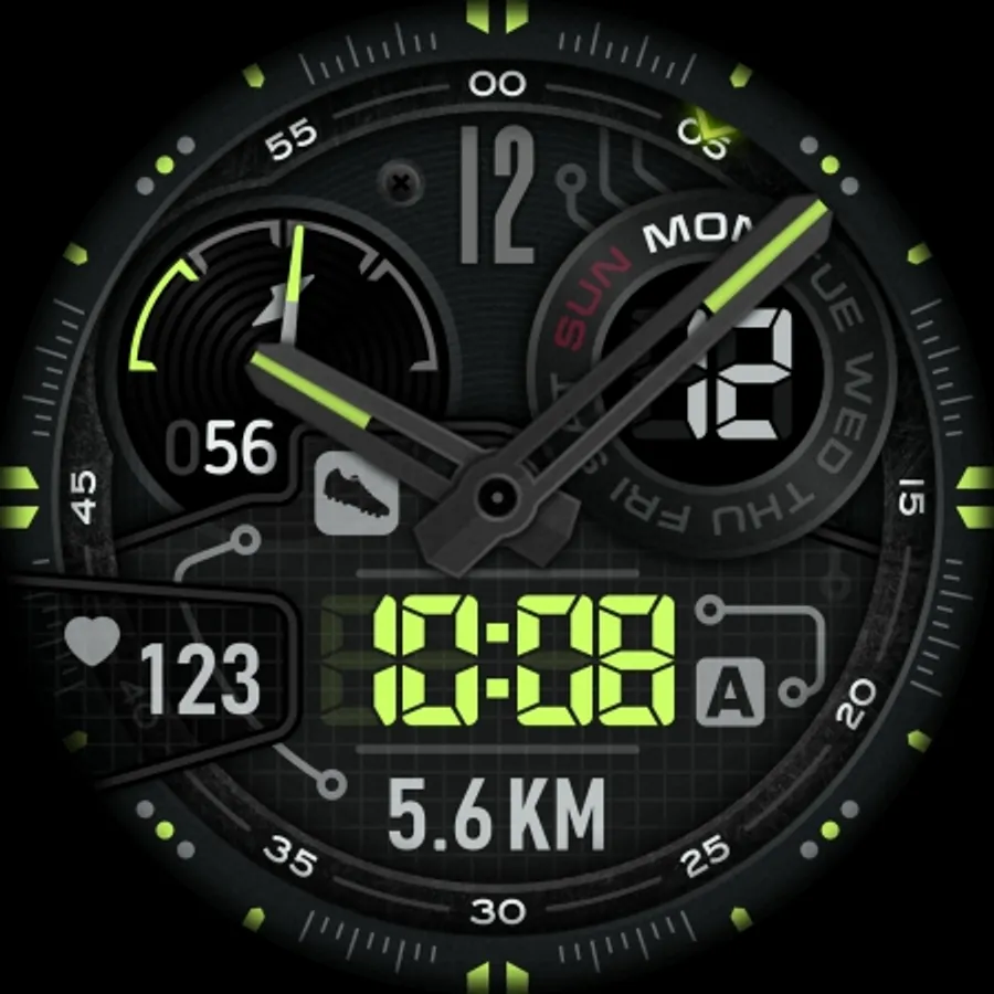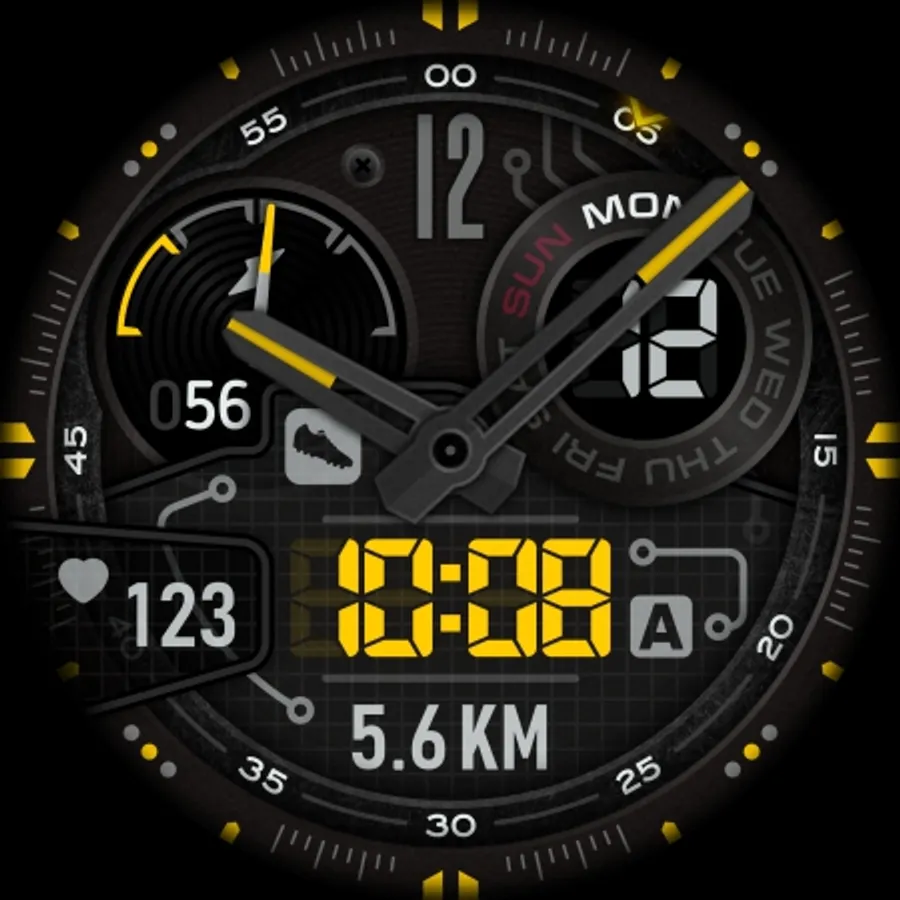 The SH005 Foxtrot 2 is a Hybrid watch face for Wear OS by Shards.