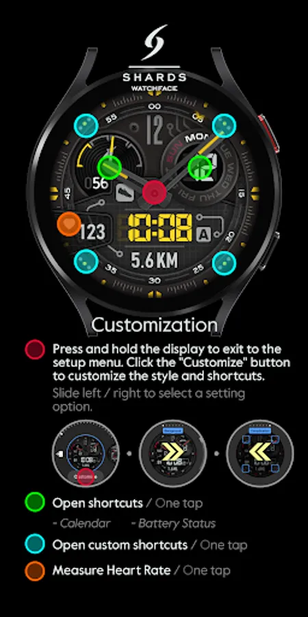 Shards is the perfect choice of watch faces for Wear OS smartwatches. Analog, digital, hybrid watch faces for your watch.