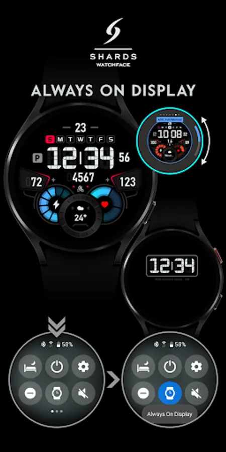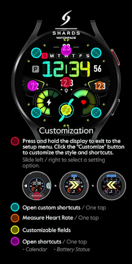 Shards is the perfect choice of watch faces for Wear OS smartwatches. Analog, digital, hybrid watch faces for your watch.