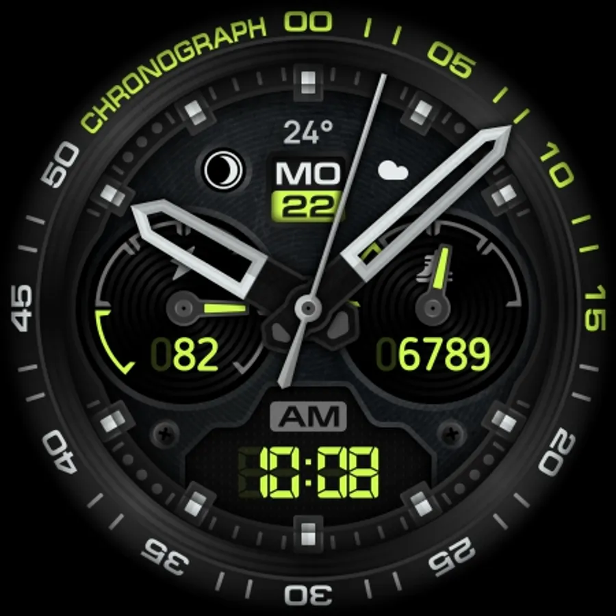 The SH013 Technician is a Hybrid watch face for Wear OS by Shards.