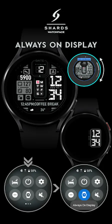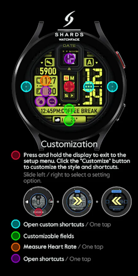 Shards is the perfect choice of watch faces for Wear OS smartwatches. Analog, digital, hybrid watch faces for your watch.