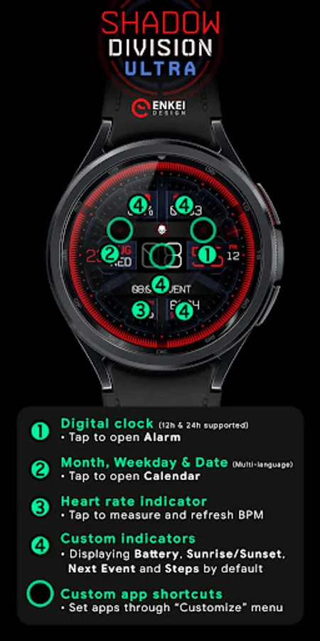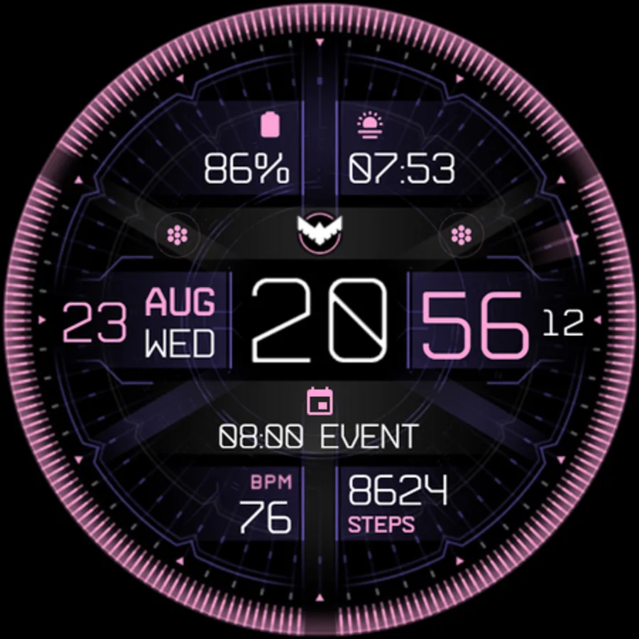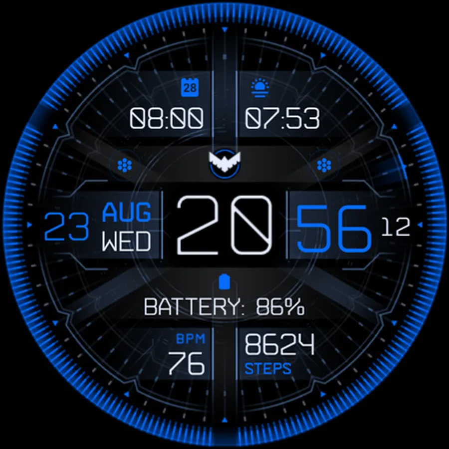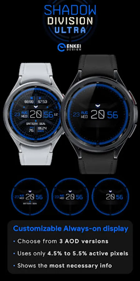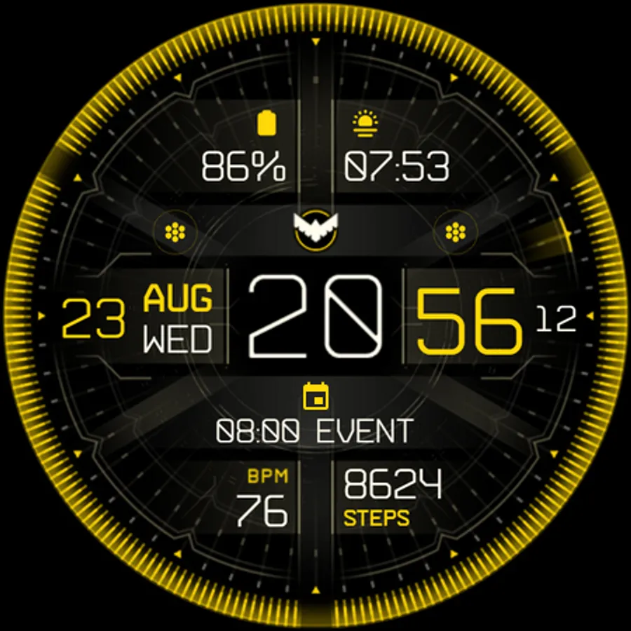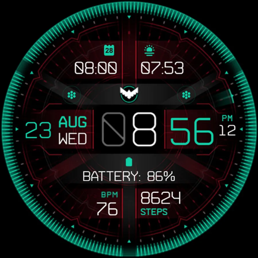 Shadow Division Ultra is a high-tech digital watch face with a futuristic interface, and tons of customization options!