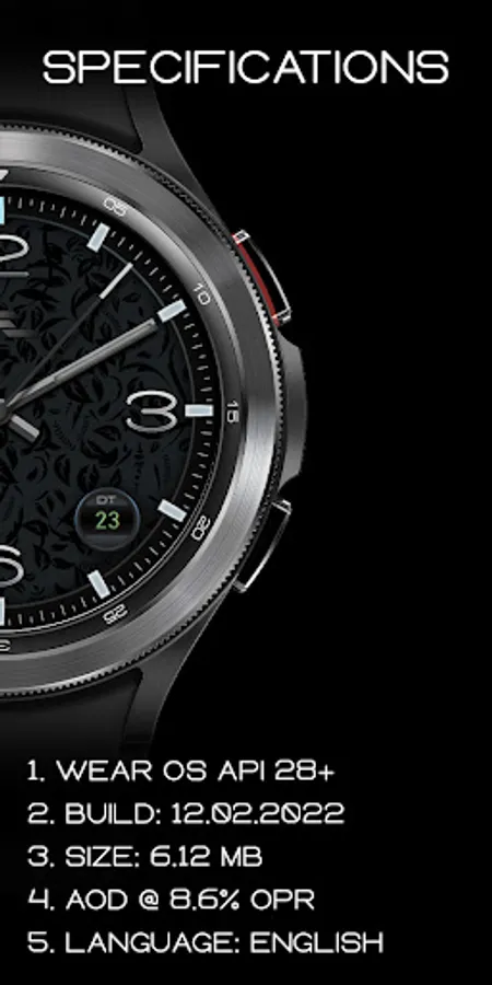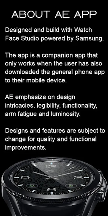 Build with Watch Face Studio powered by Samsung. The App has been tested on Samsung Watch 4 Classic and all features and functions worked as featured. The same may not apply with other Wear OS devices.