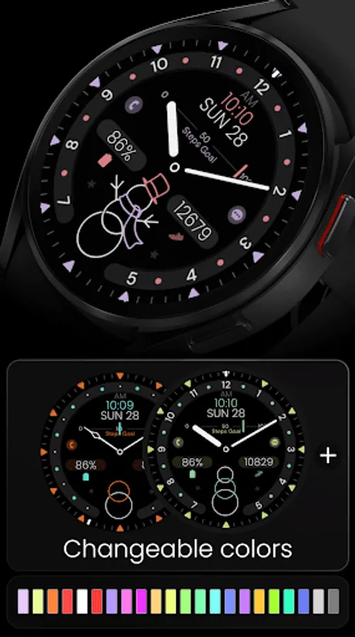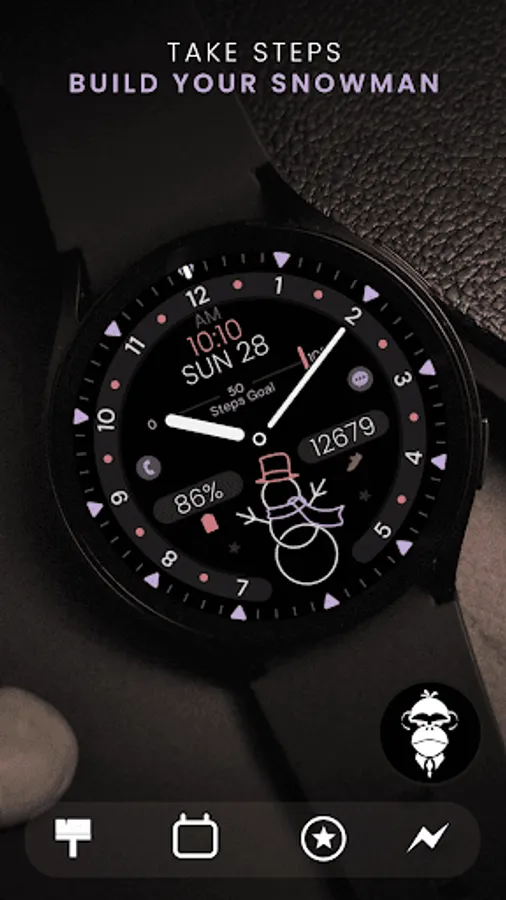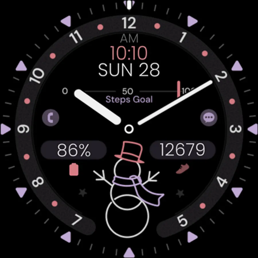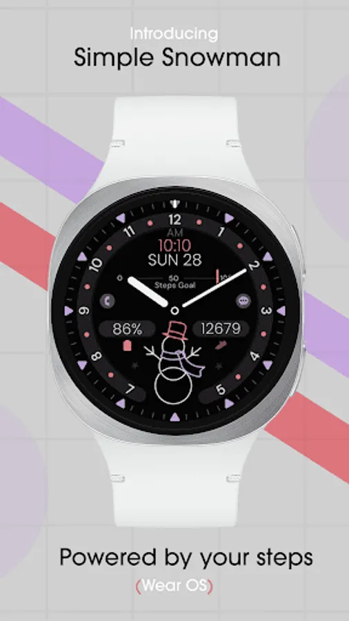 Simple hybrid watch face with a snowman that grows based on your step progress. Designed to motivate movement with a clean, classy layout.
