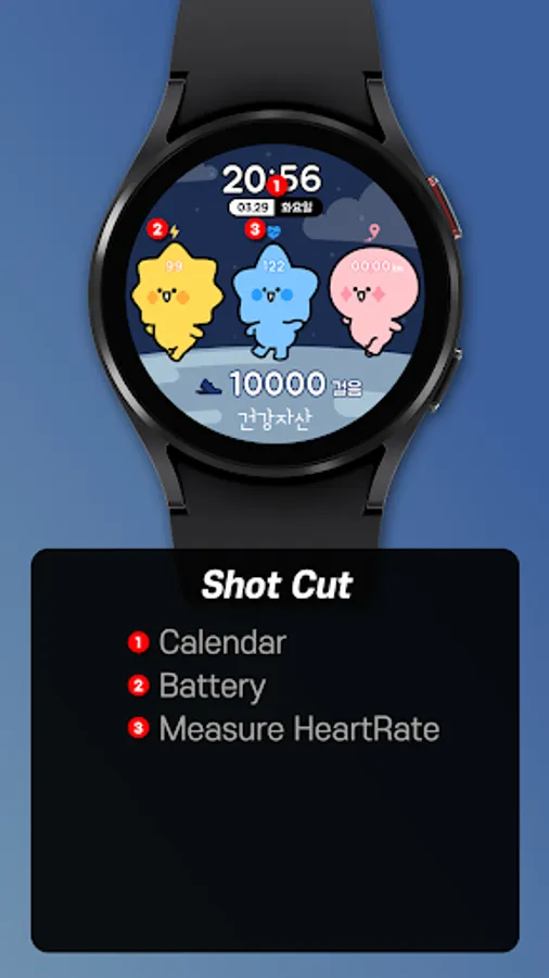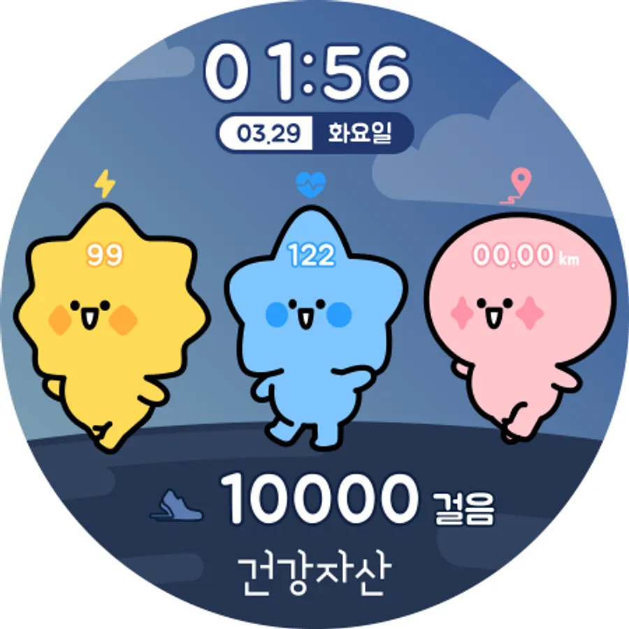삼성생명에서 건강자산 캠페인을 진행하며 대한민국 국민의 건강 증진을 위해 걸음 수 측정을 메인으로 하는 워치페이스를 제작하였습니다.
