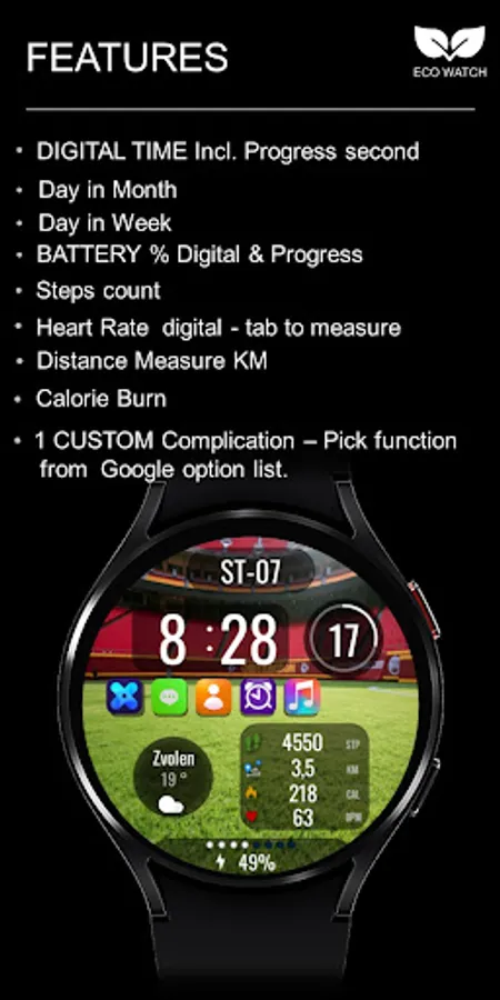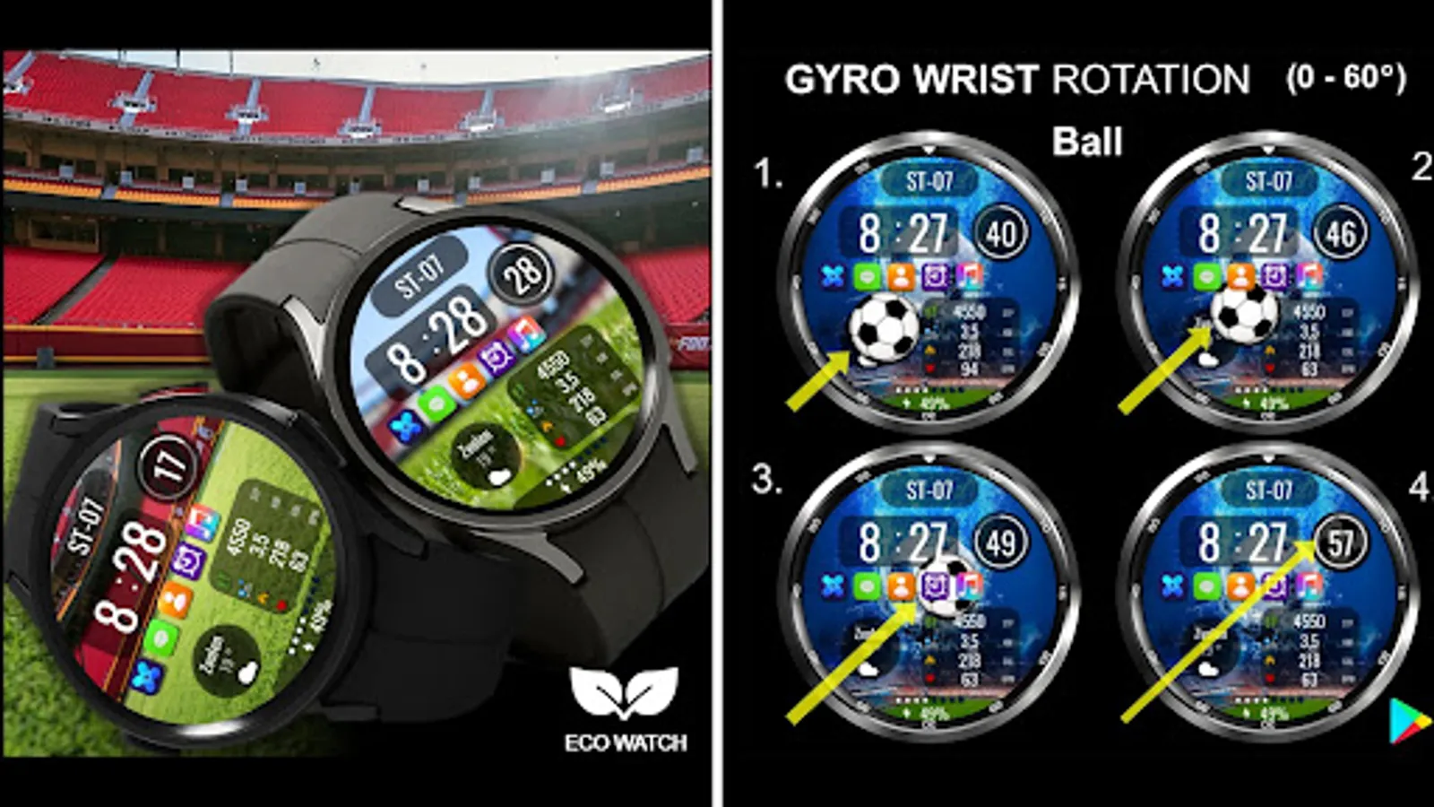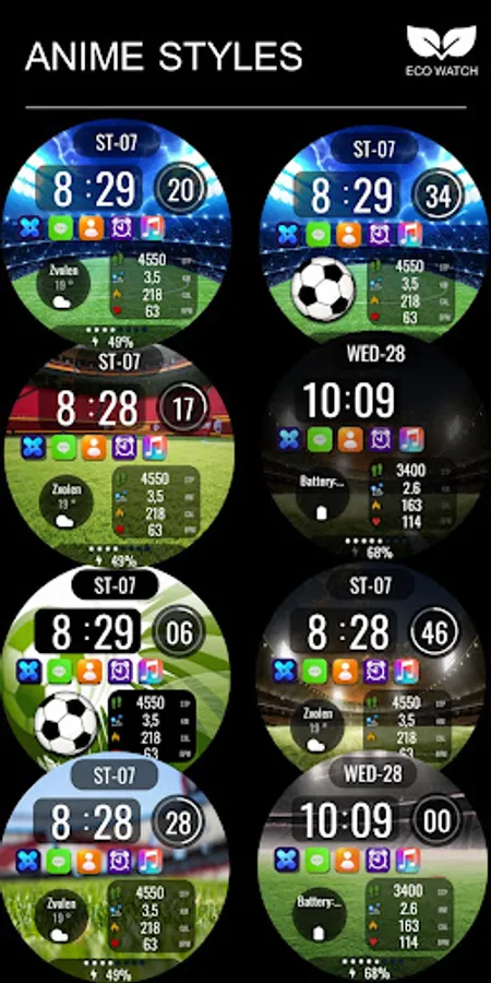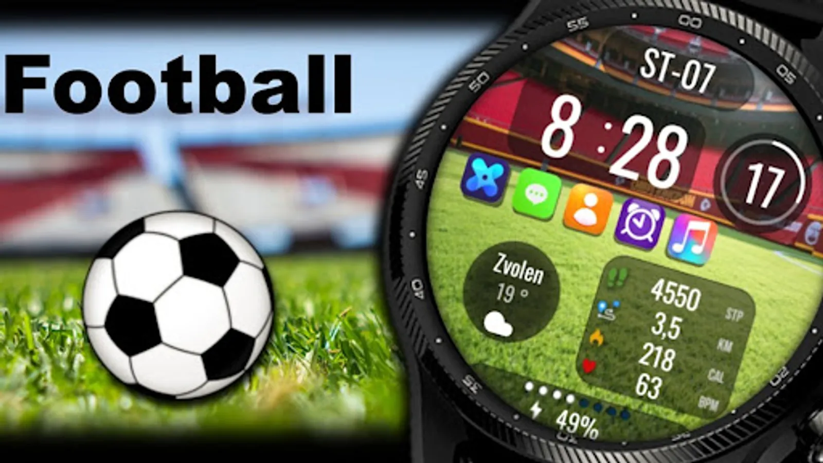 ⌚︎This Modular animated watch-face contains 8 football stadium background, ON/OFF football ball option.