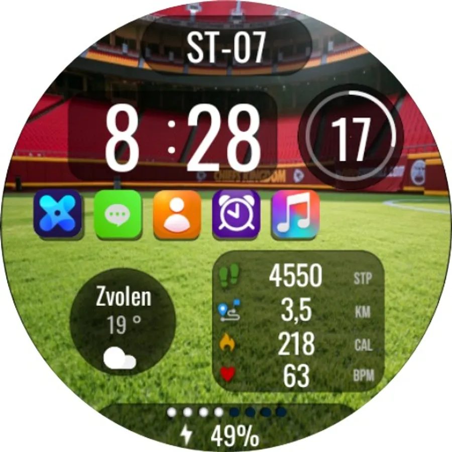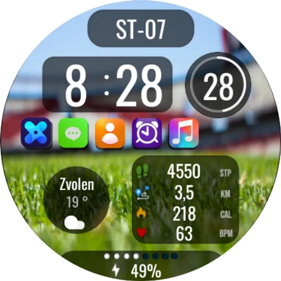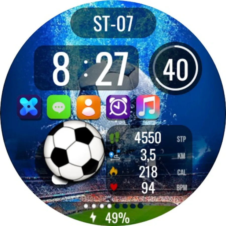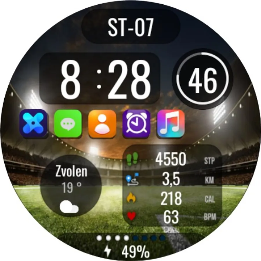 On this Modular Watch-face theme you see 8 football stadium's background. Gyro animation of football ball with ON/OFF Option.