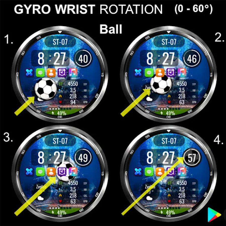 - Football ball (animation effect (GYRO) while you rotate your wrist from 0 to 60 Degree those ball move from bottom.