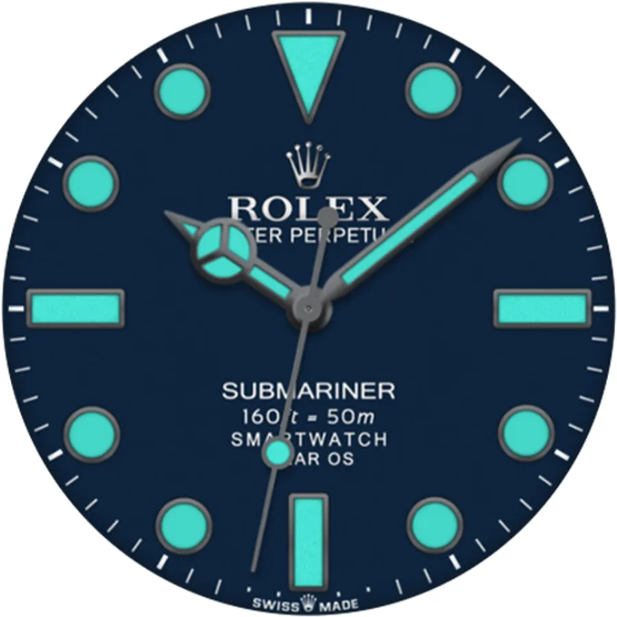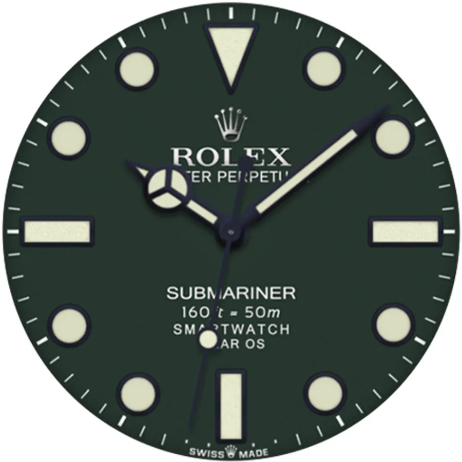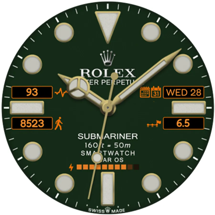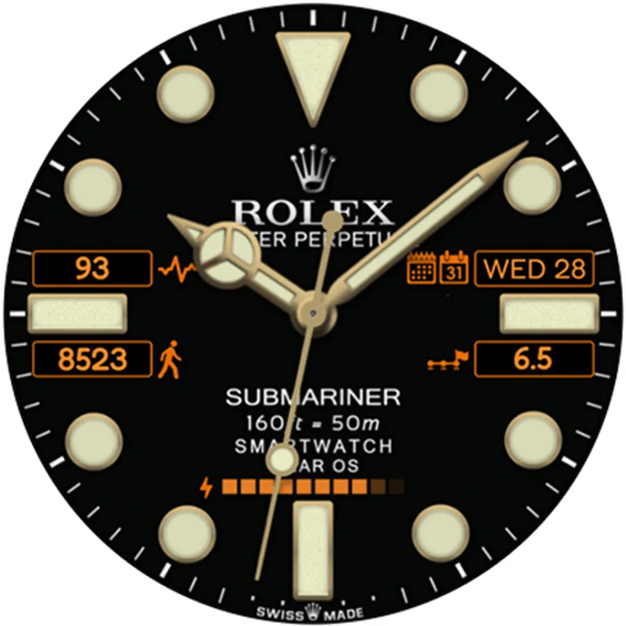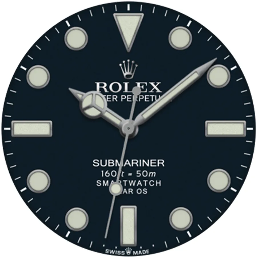 A smartwatch rendition of OYSTER PERPETUAL made for ROLEX enthusiasts. Dual mode field, health activity watch face with various combinations of SUBMARINER series renditions.
