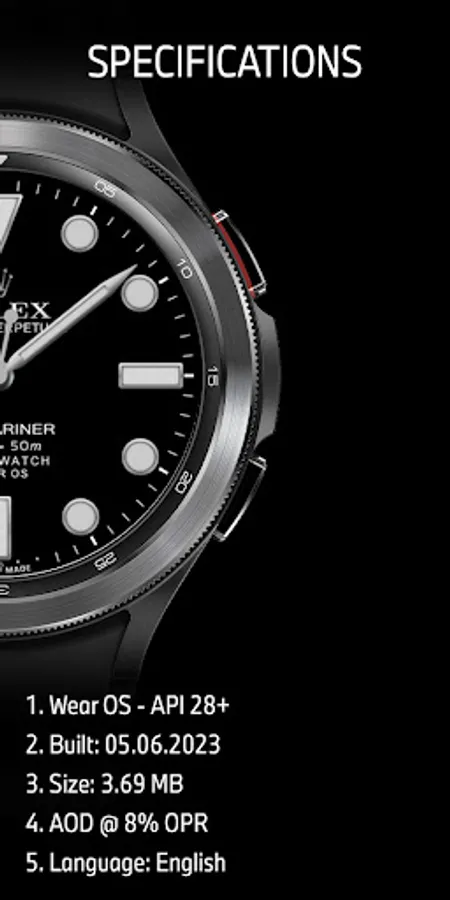 Unmatched against the master craftsmanship of the “real thing”, this virtual replica is the closest Smartwatch users can get to appreciate a ROLEX SUBMARINER on the wrist.