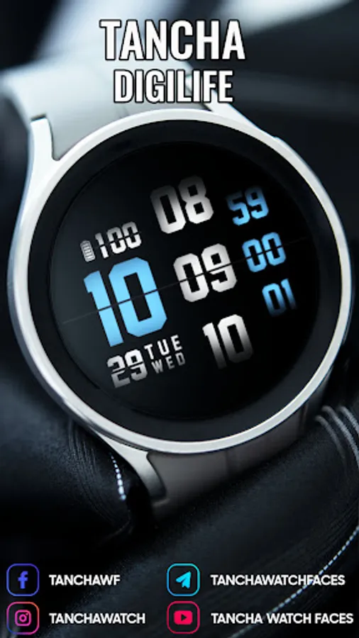 The perfect looks and easy-to-read Digital watch face, by Tancha for Wear OS devices.