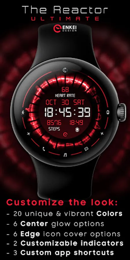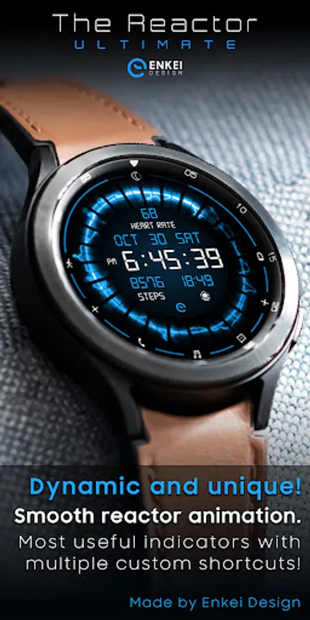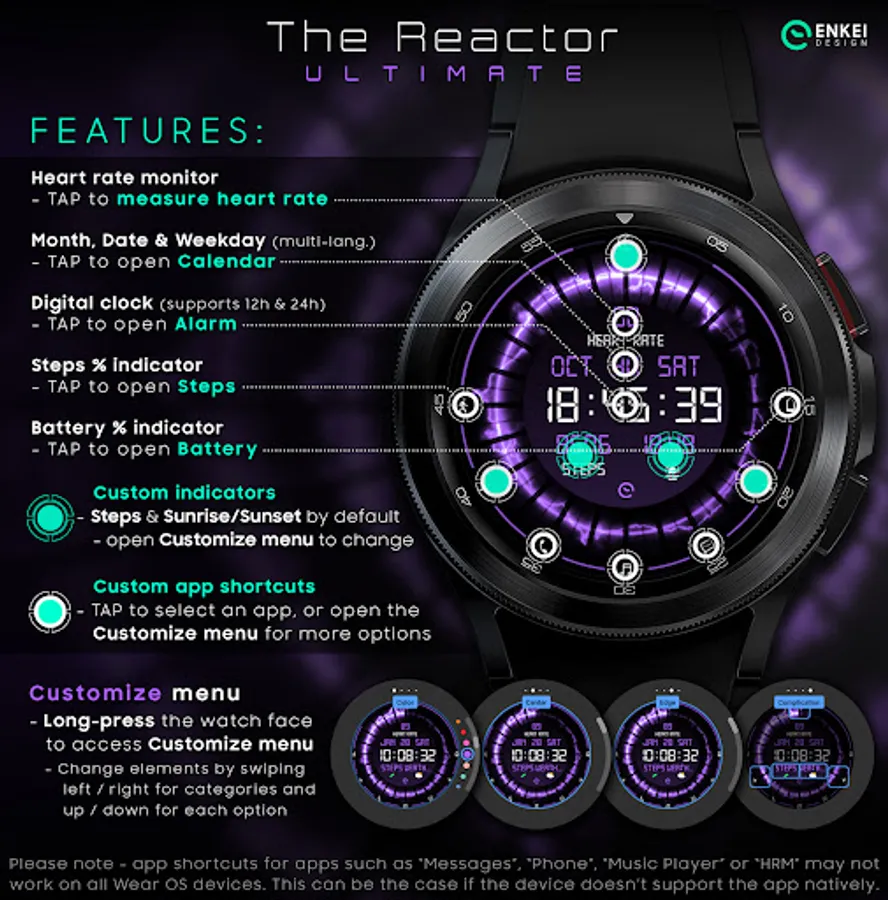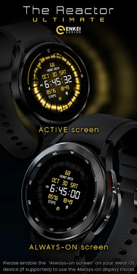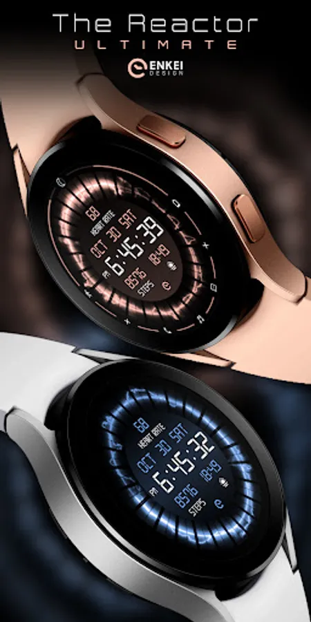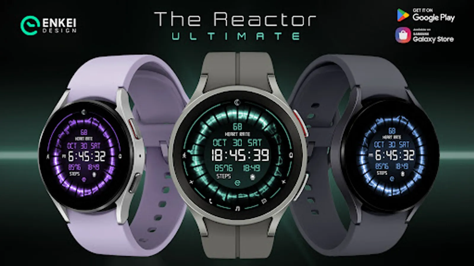 Enkei Design proudly presents a fully upgraded and refined Wear OS version of "The Reactor", our top-rated digital animated watch face from the Samsung Galaxy Store: The Reactor Ultimate !