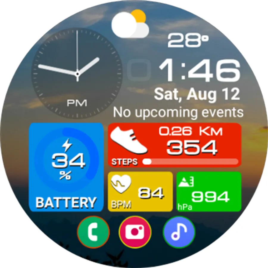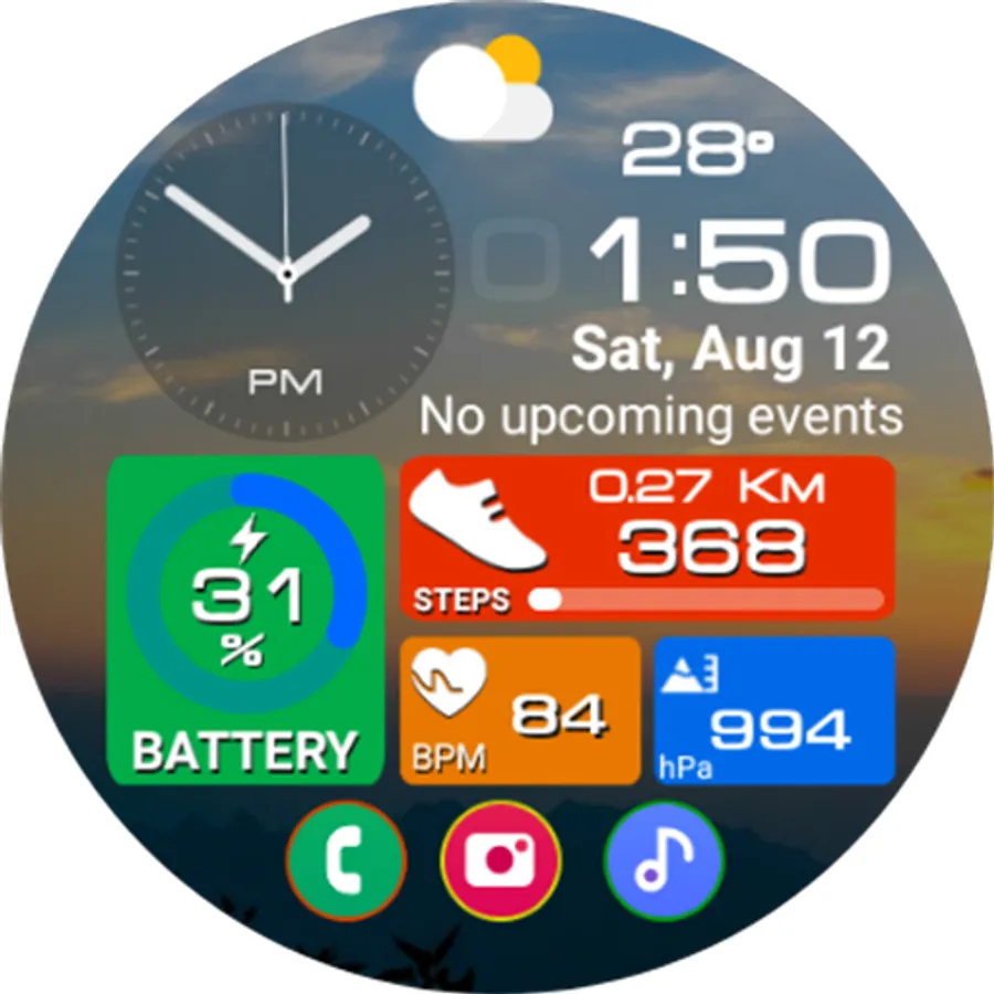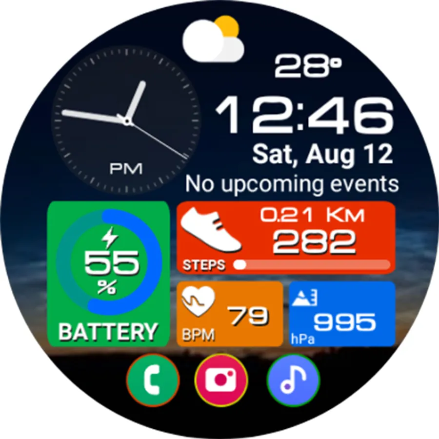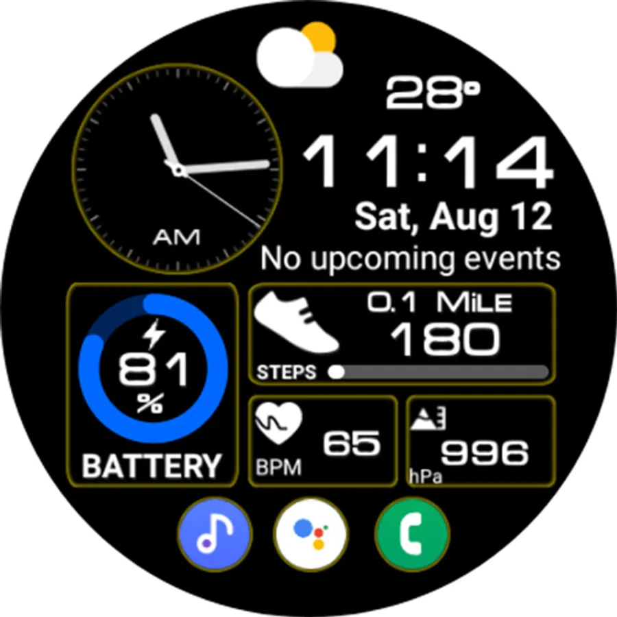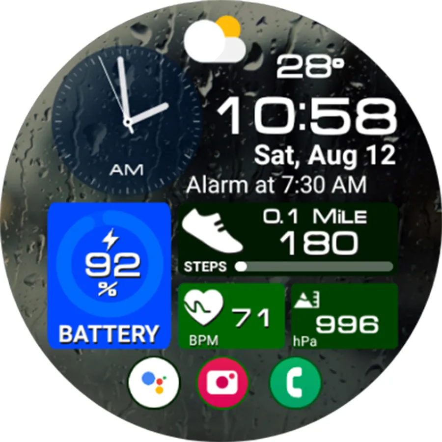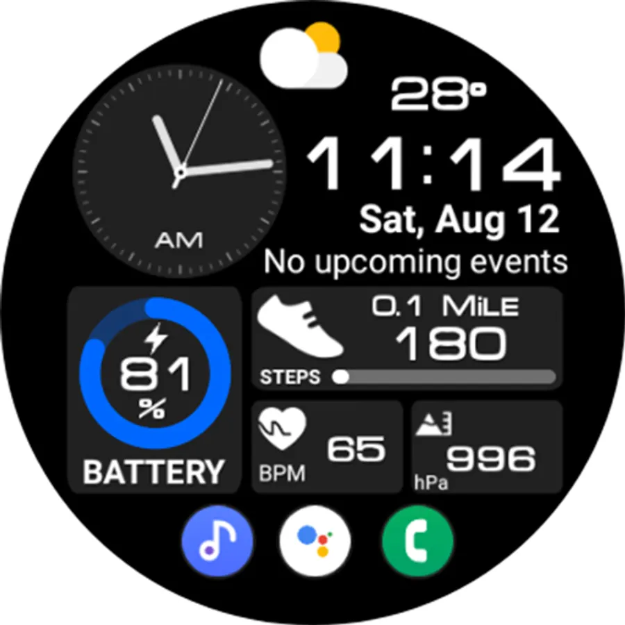 This watch face supports all Wear OS devices with API level 28 or higher.