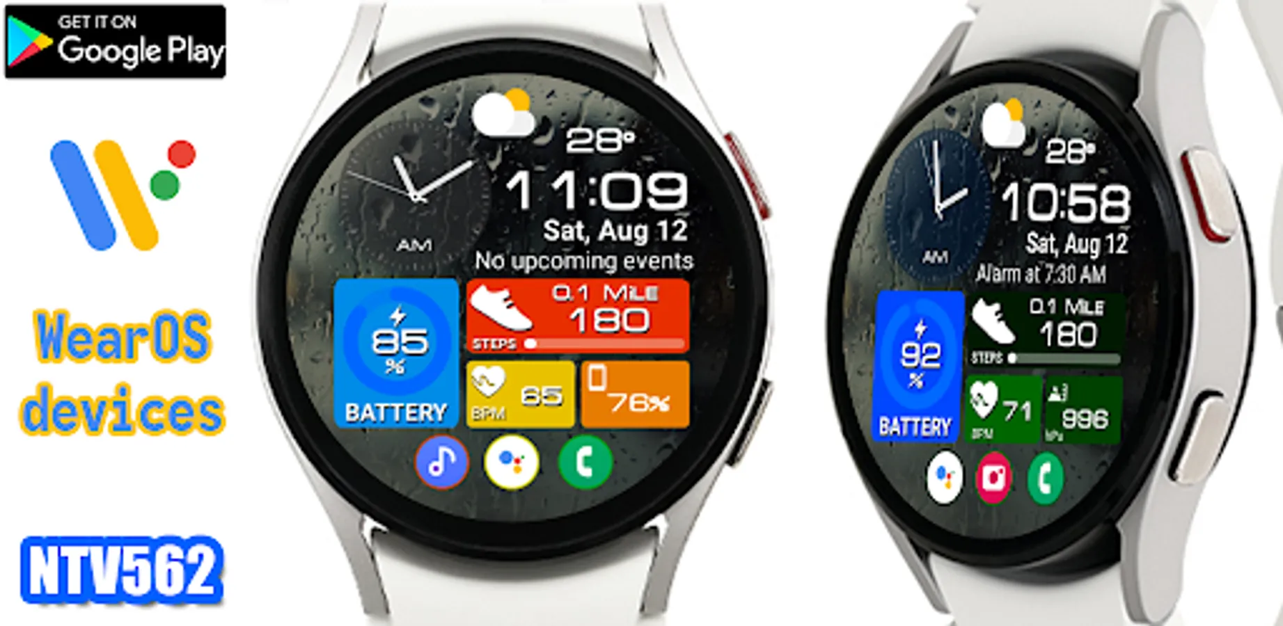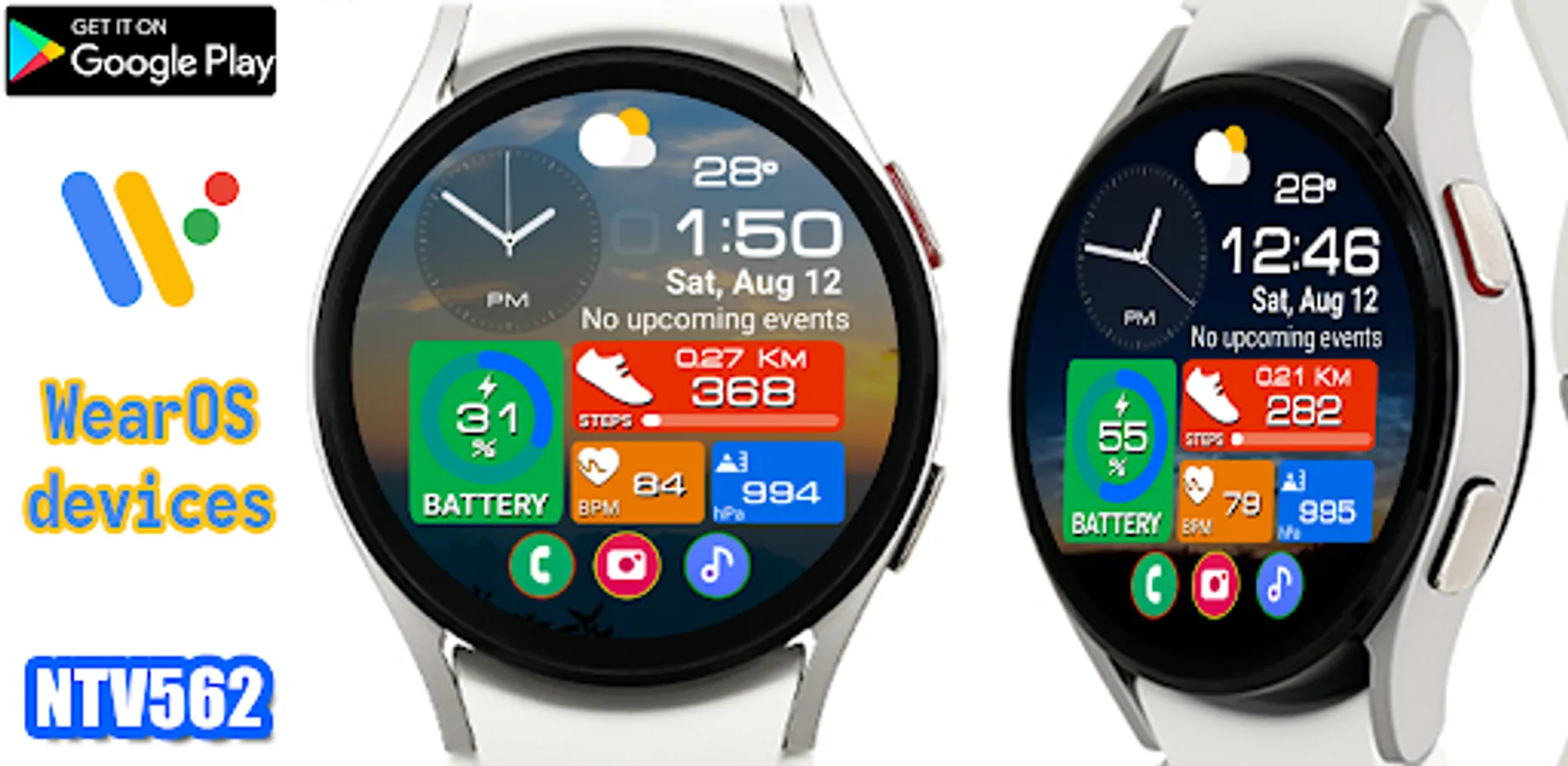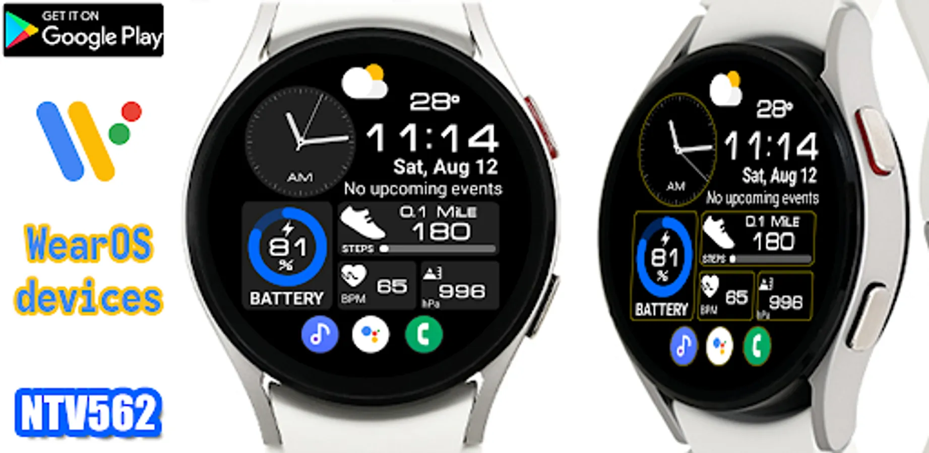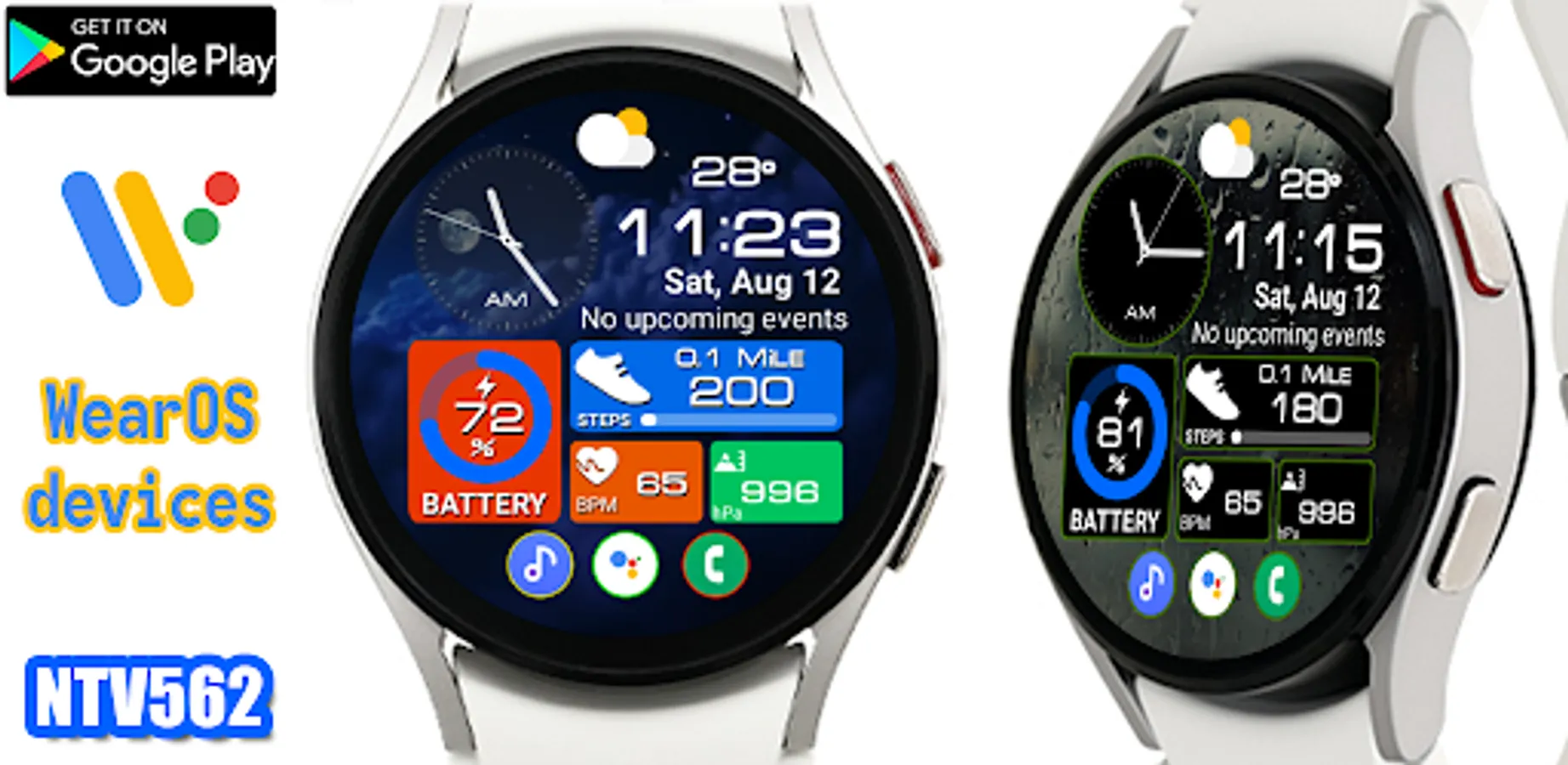 This watch face supports all Wear OS devices with API level 28 or higher.