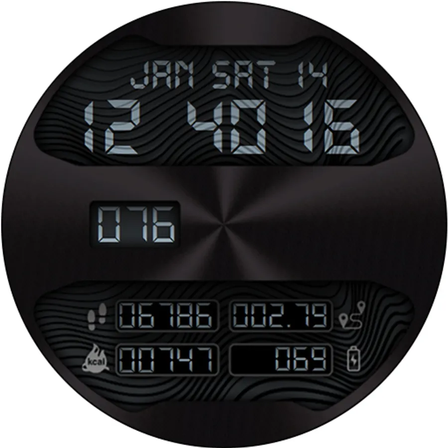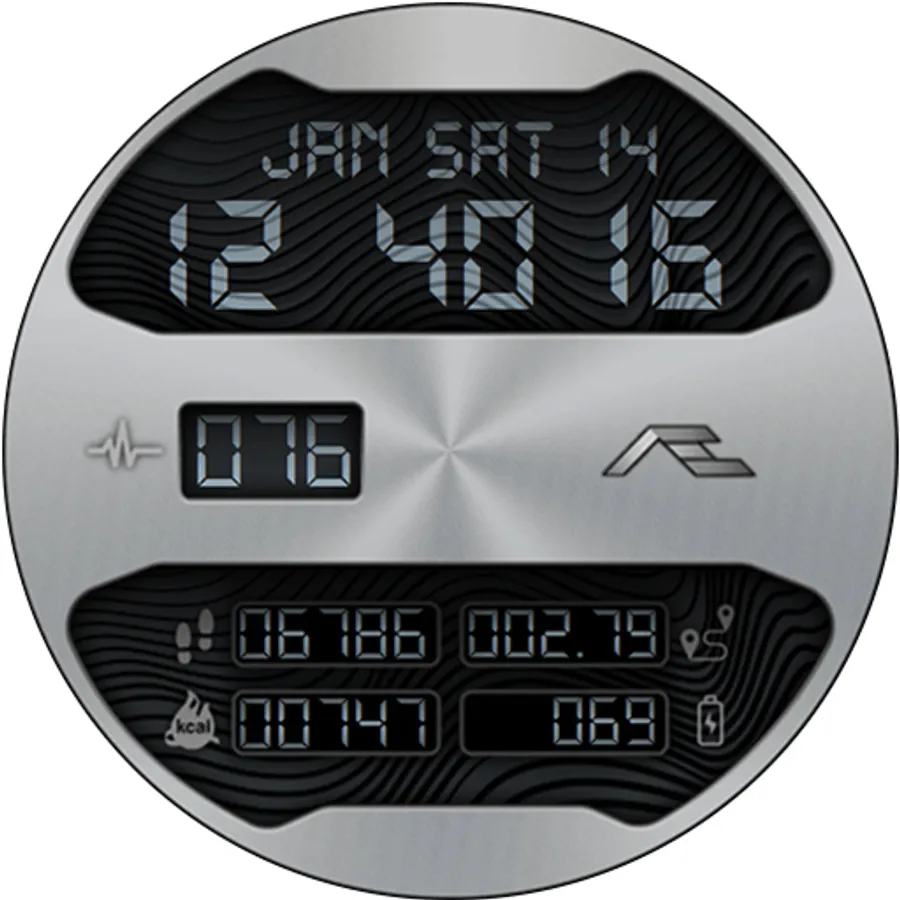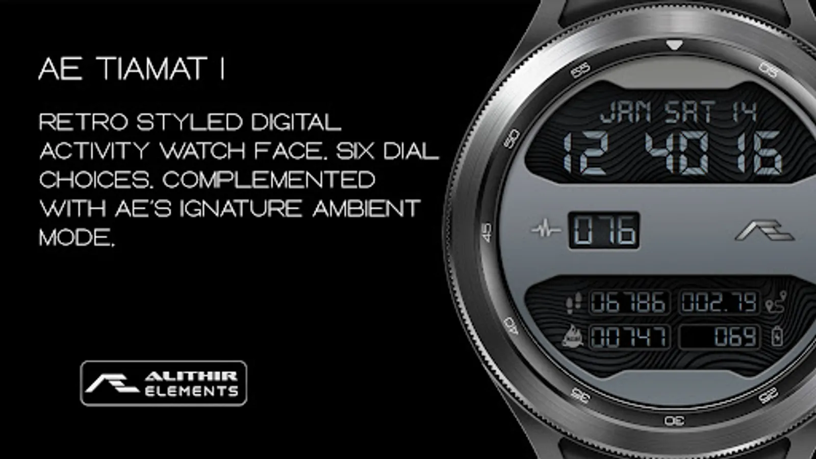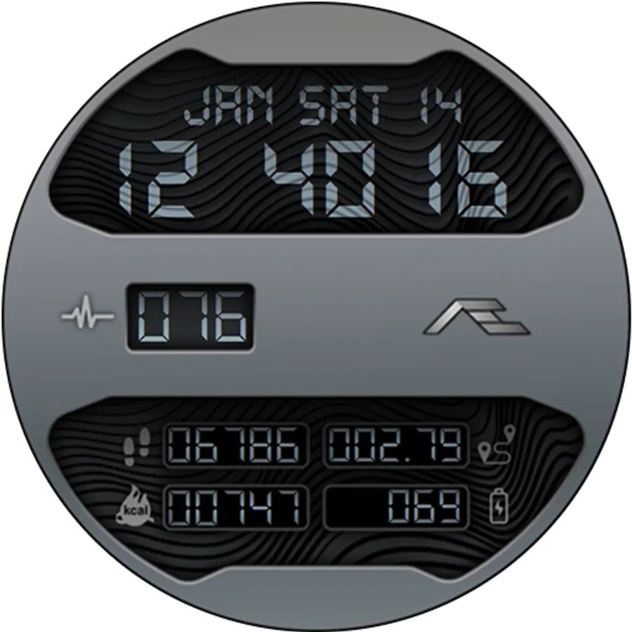 Retro styled digital health activity watch face made for the active. Six dial choices complemented with a cool Always ON Display.