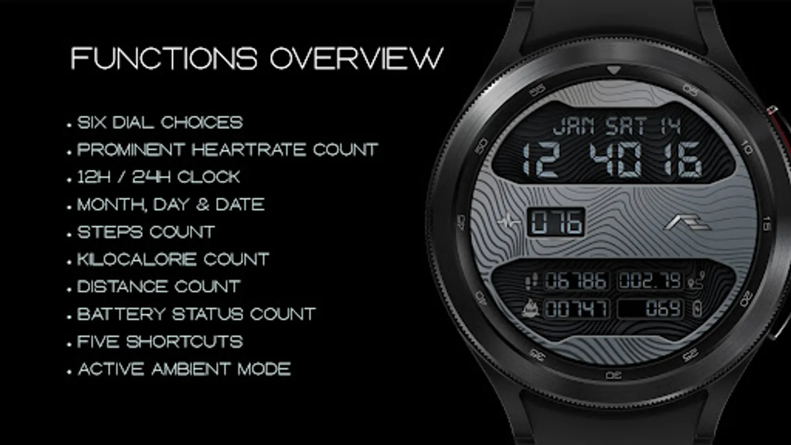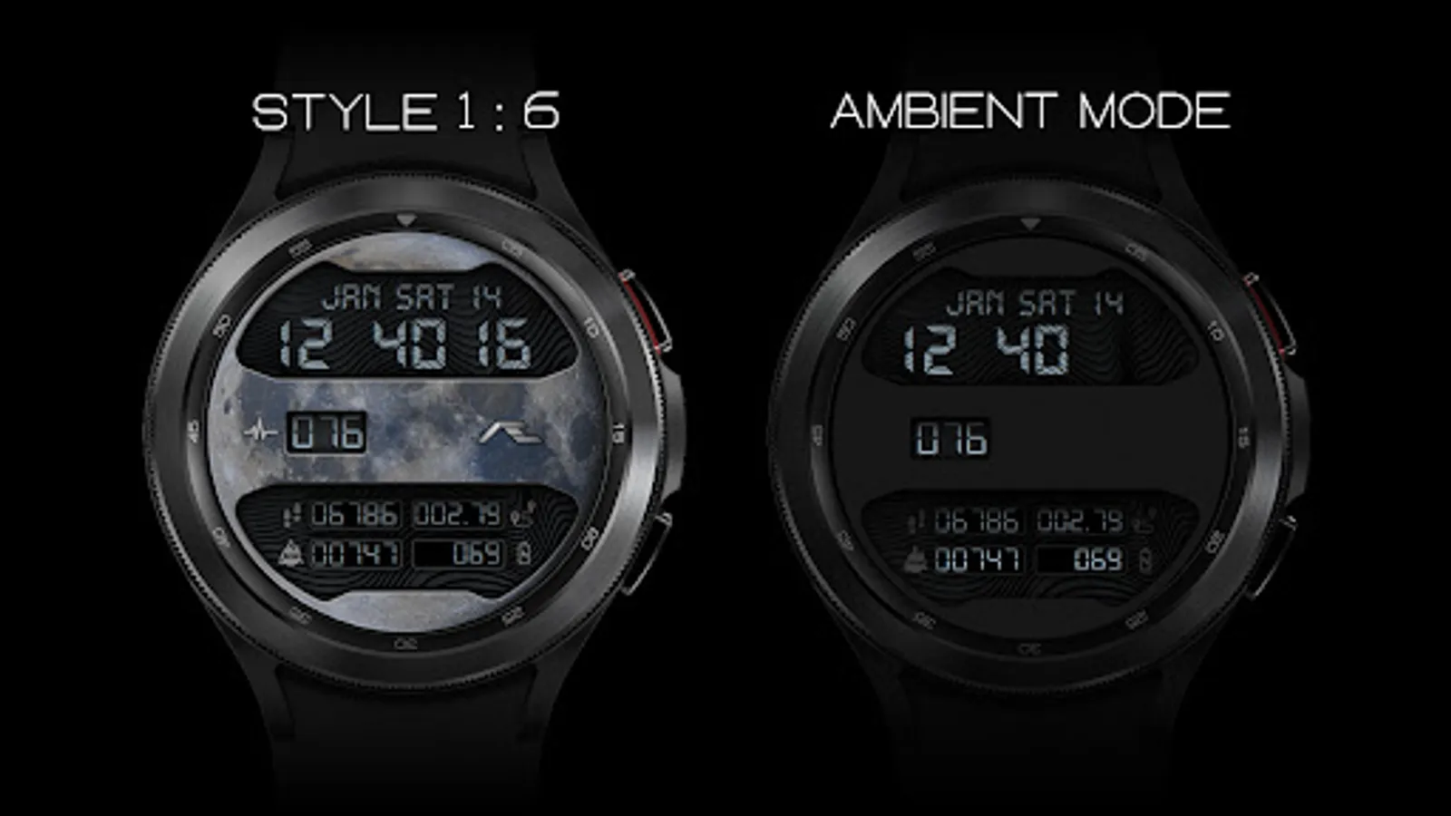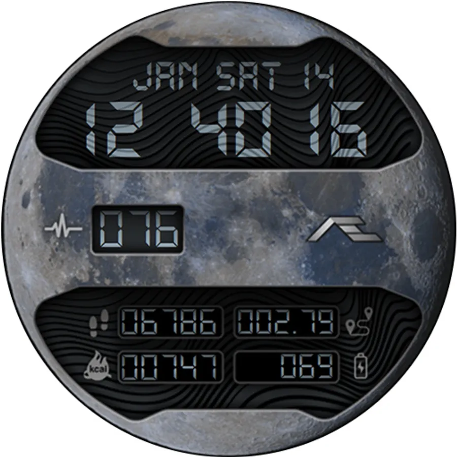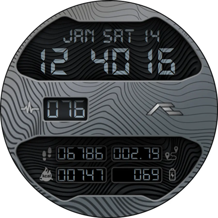 Retro styled digital health activity watch face made for the active. Six dial choices complemented with a cool Always ON Display.