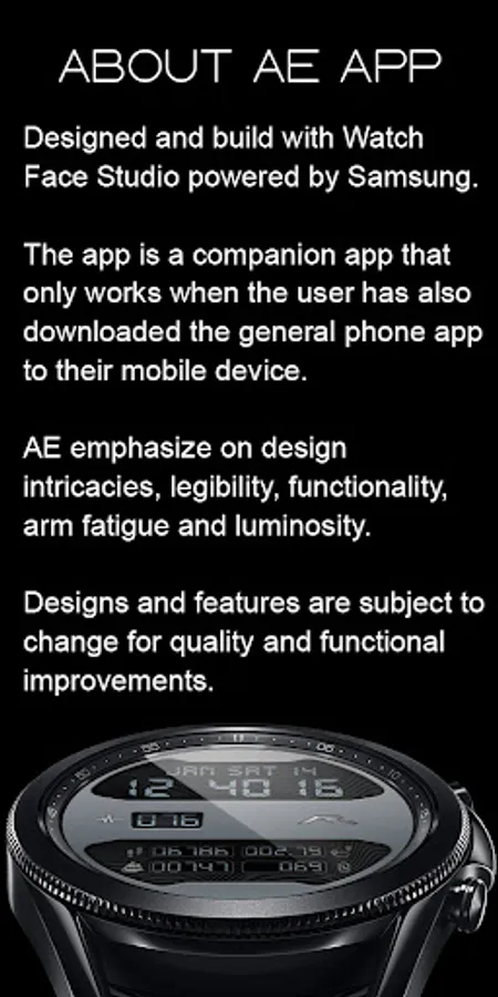 All functions and features of this App have been tested on Galaxy Watch 4 and Watch 4 Classic and worked as intended. The same may not apply to other Wear OS devices. The app is subject to change for quality and functional improvements.