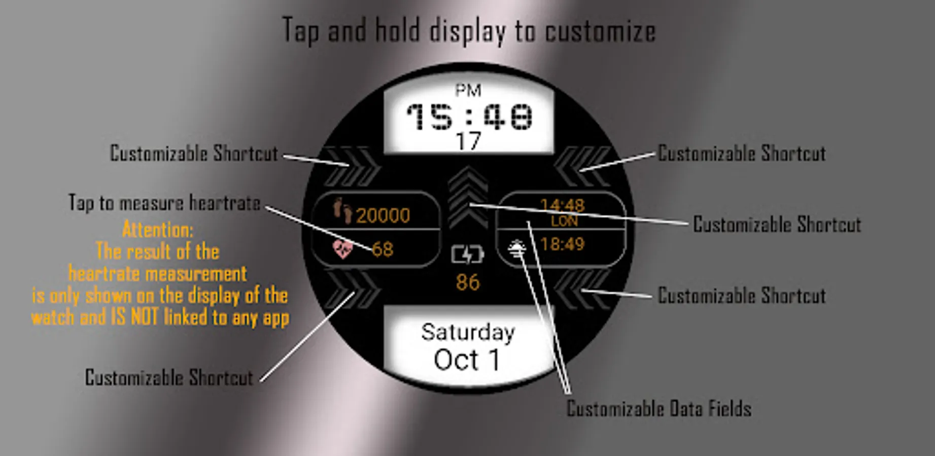 Developed for Wear OS compatible with the Galaxy Watch 4 / Galaxy Watch 4 Classic Galaxy Watch 5 Galaxy Watch 5 Pro and other watches with Wear OS 3.5