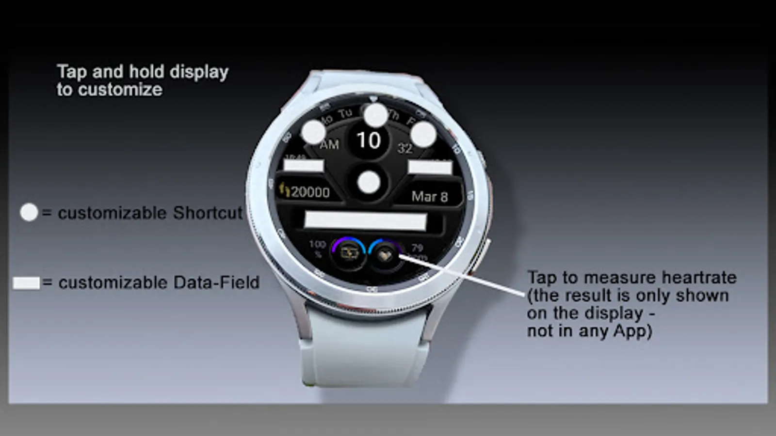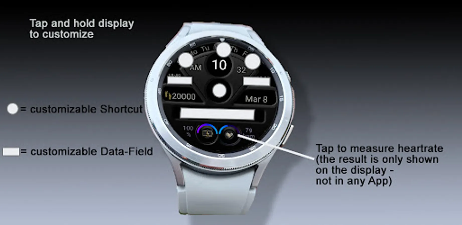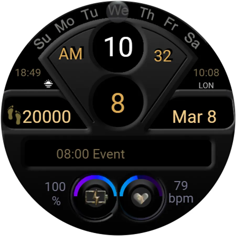 This Digital Watch Face with a modern and premium Look is compatible with the Samsung Galaxy Watch 4 / Samsung Galaxy Watch 4 Classic the Samsung Galaxy Watch 5, Samsung Galaxy Watch 5 Pro, and other watches with Wear OS