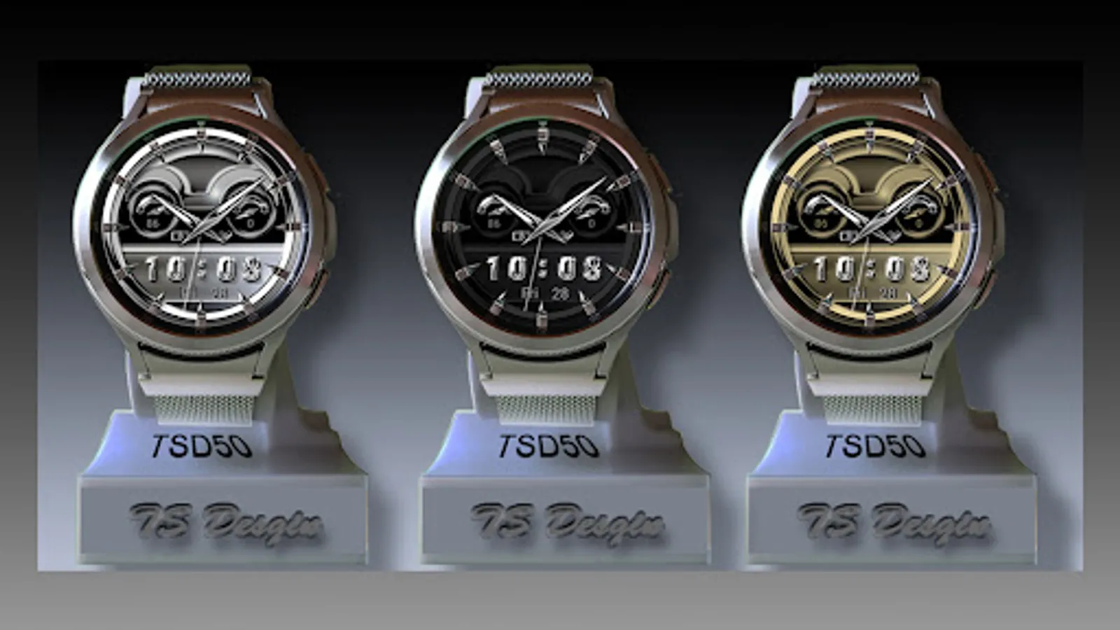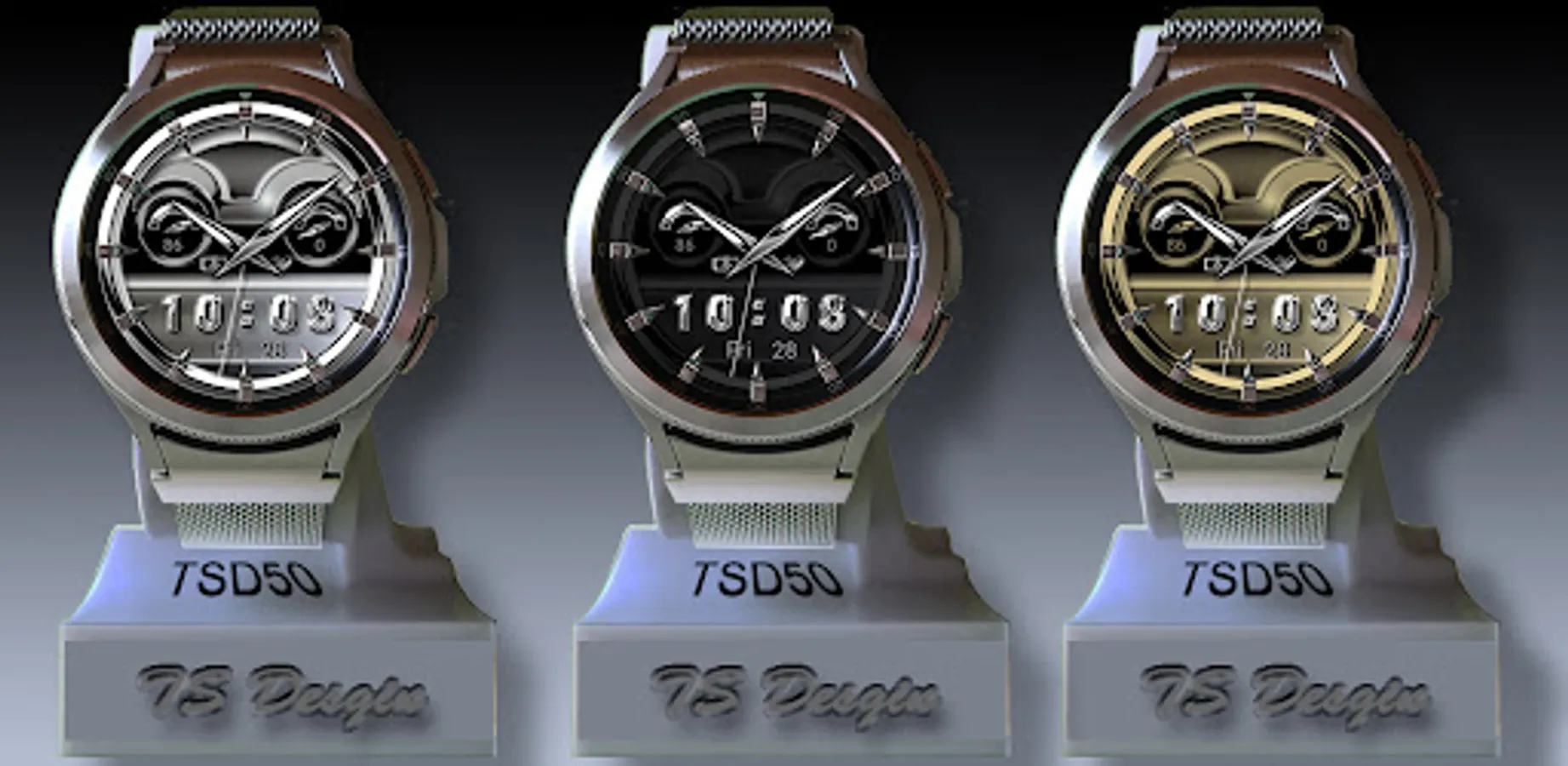 This Watch Face with a premium classic Look is compatible with the Samsung Galaxy Watch 4 / Galaxy Watch 4 Classic the Galaxy Watch 5, Galaxy Watch 5 Pro, and other watches with Wear OS