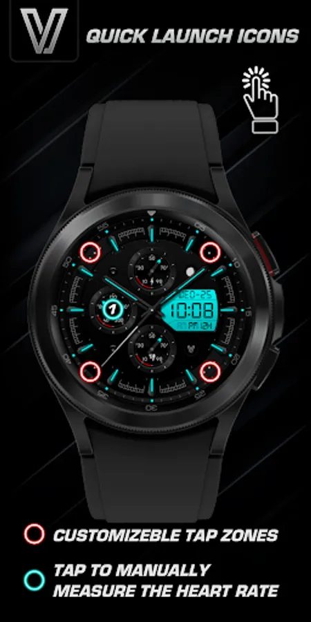 4 customizable tap zones for quick access to applications. Click on the heart rate to measure the heart rate manually.