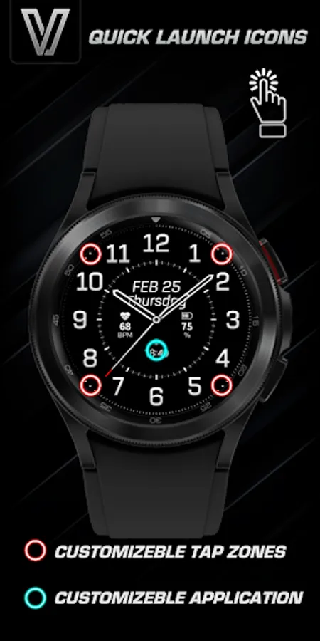 4 customizable tap zones for quick access to applications. 1 customizable app (you can choose weather, sunset / sunrise time, schedule, etc.)