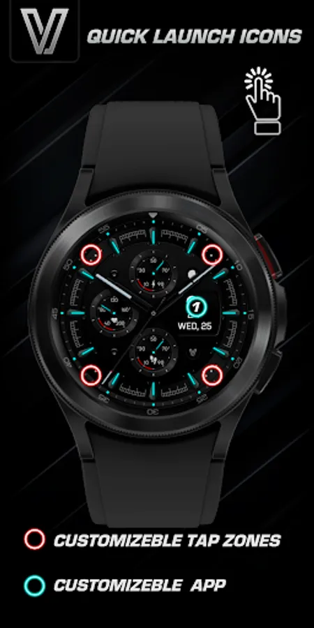 4 customizable tap zones for quick access to applications. Click on the heart rate to measure the heart rate manually. 1 customizable app.