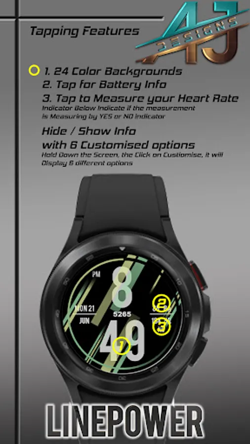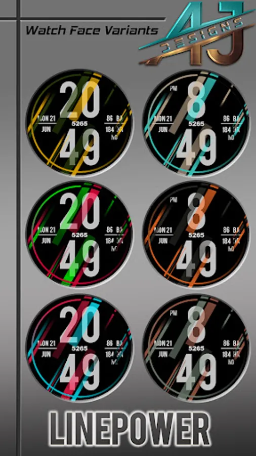 This Watch Face is made for everyday use with its large Time Display and loads of colors.