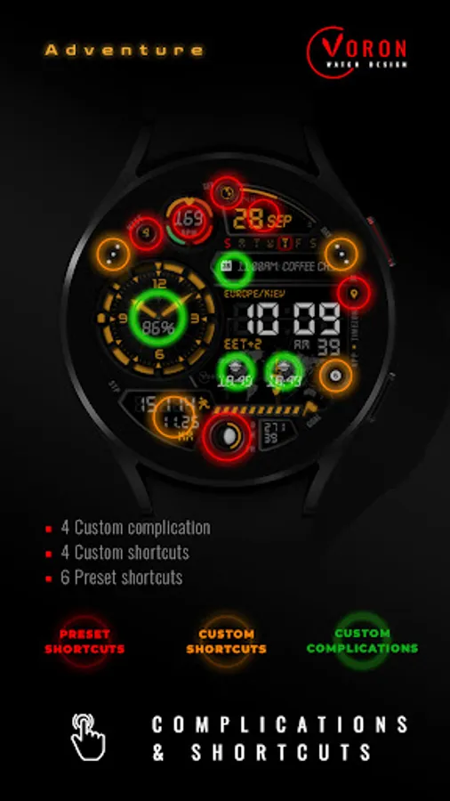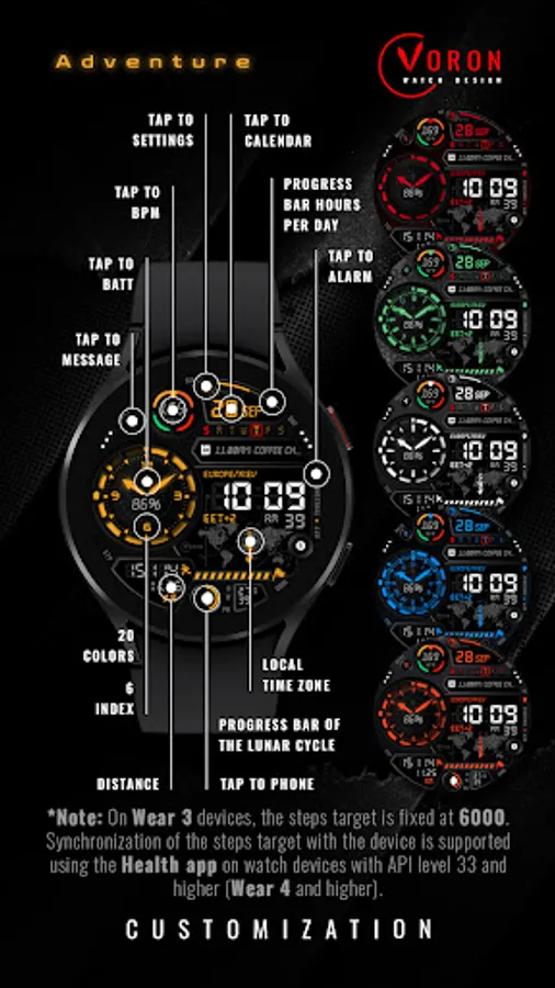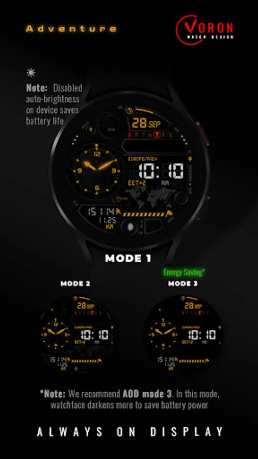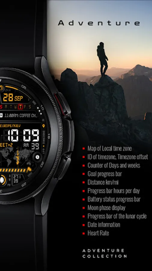 The "Adventure" informative hybrid watch face is your gateway to limitless exploration. With its dynamic design and comprehensive functionality, this watch face is your steadfast companion for every journey.