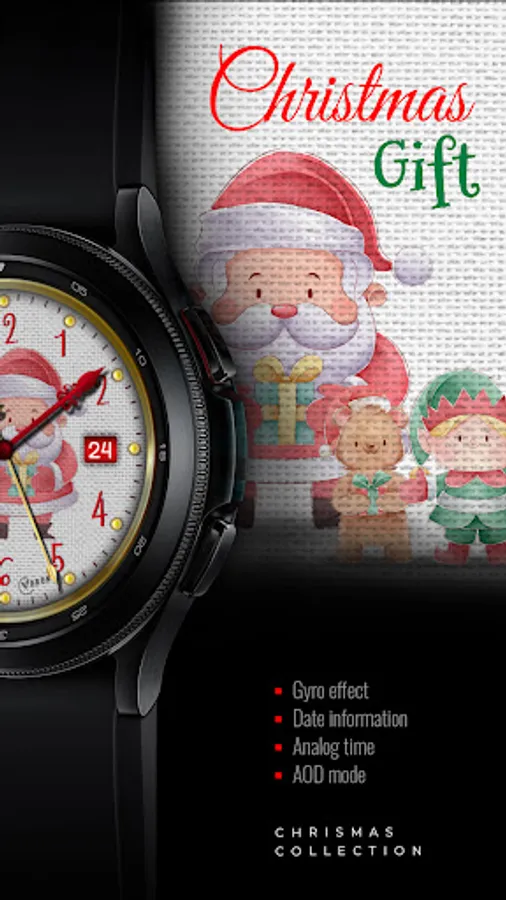 Christmas mood coming soon! The “Christmas Gift” free analog watch is a delightful and festive timepiece designed to capture the magic of the holiday season. With its charming and whimsical design, this watch face brings a cheerful spirit to your wrist. Christmas themed Analog watch face for Wear OS.