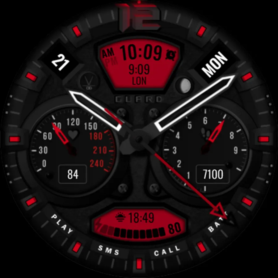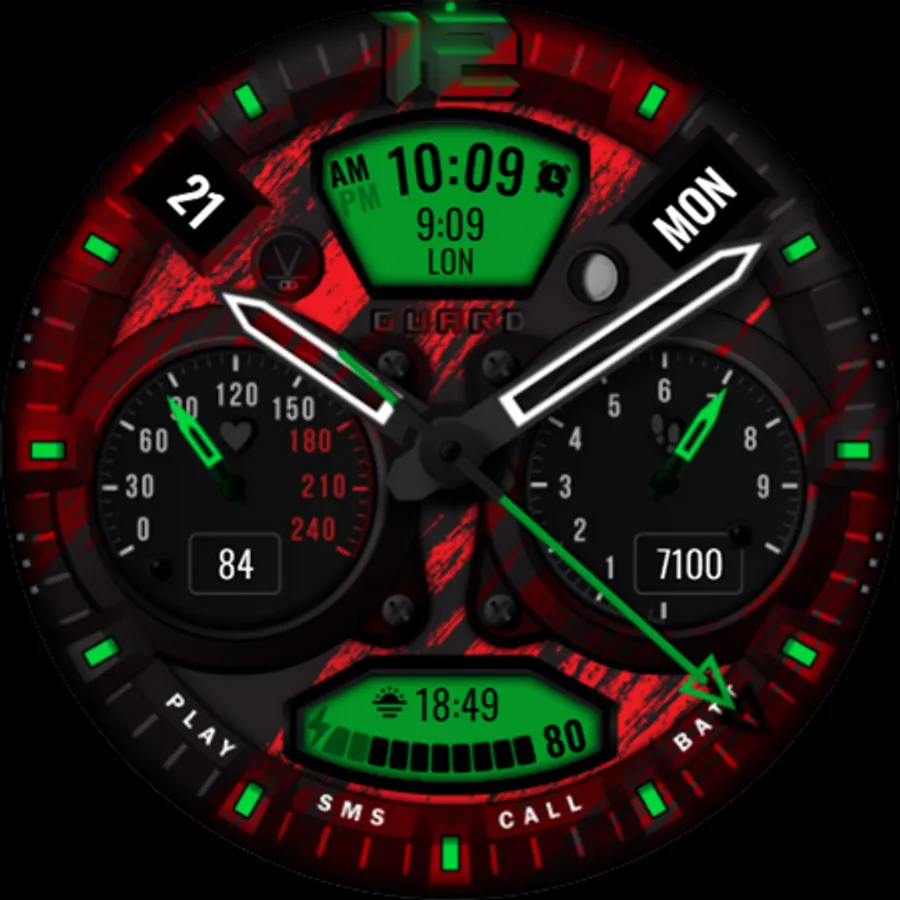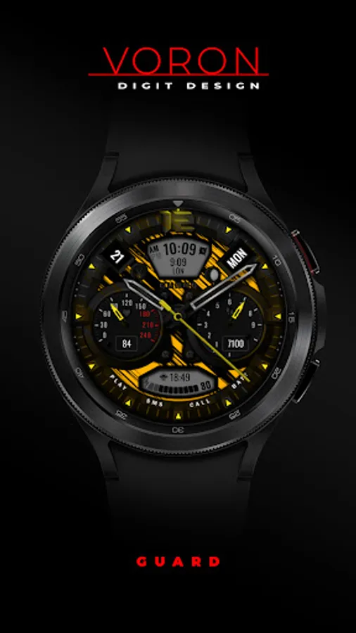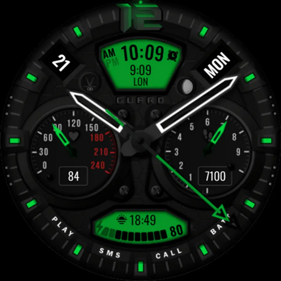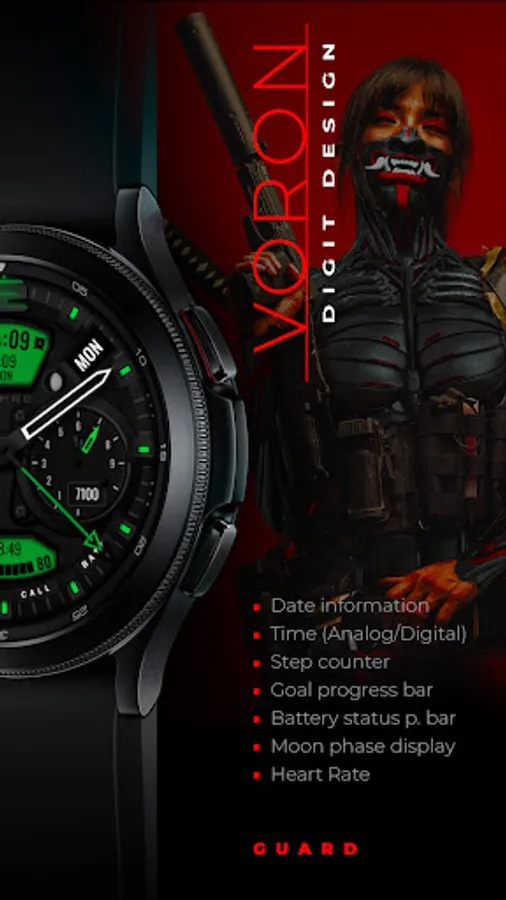 Elevate your wristwear to a new level with the "Guard" watch face—a testament to the harmonious blend of power and poise. Informative and easy to read watch face for your smart watch. There are classic hands and digital time. It is possible to customize your watch face for any style and mood.