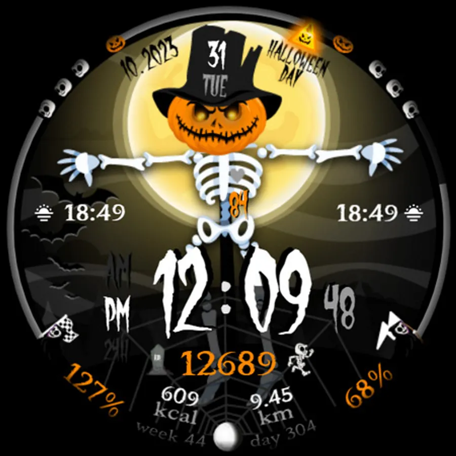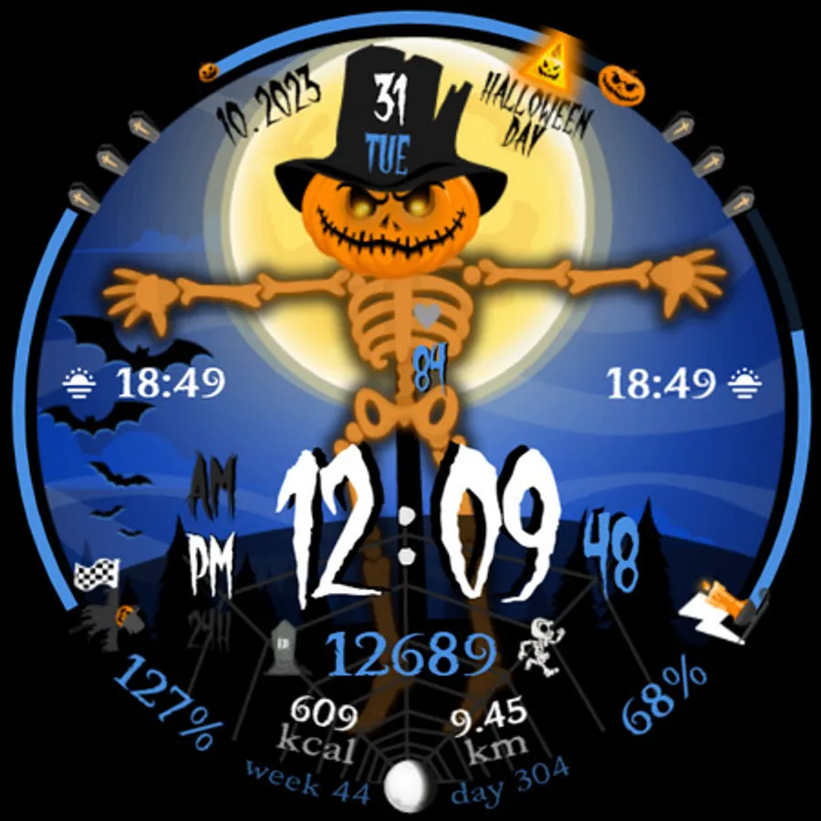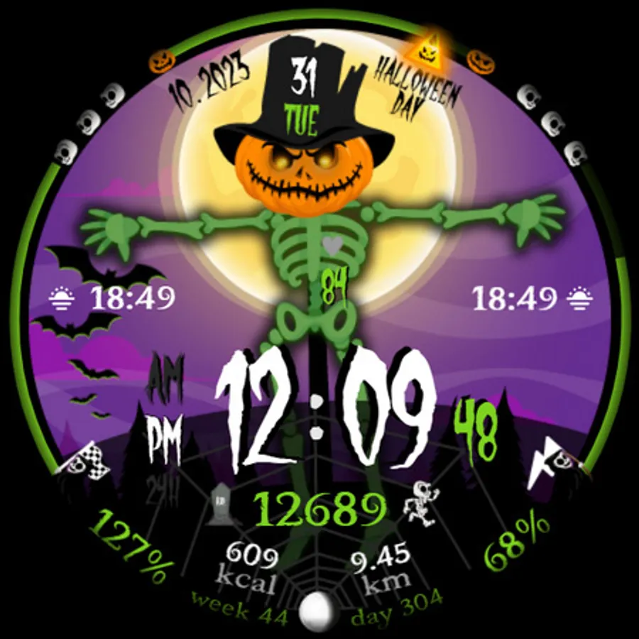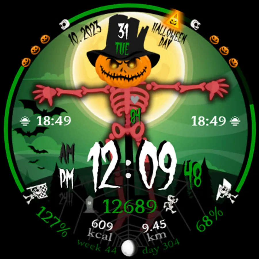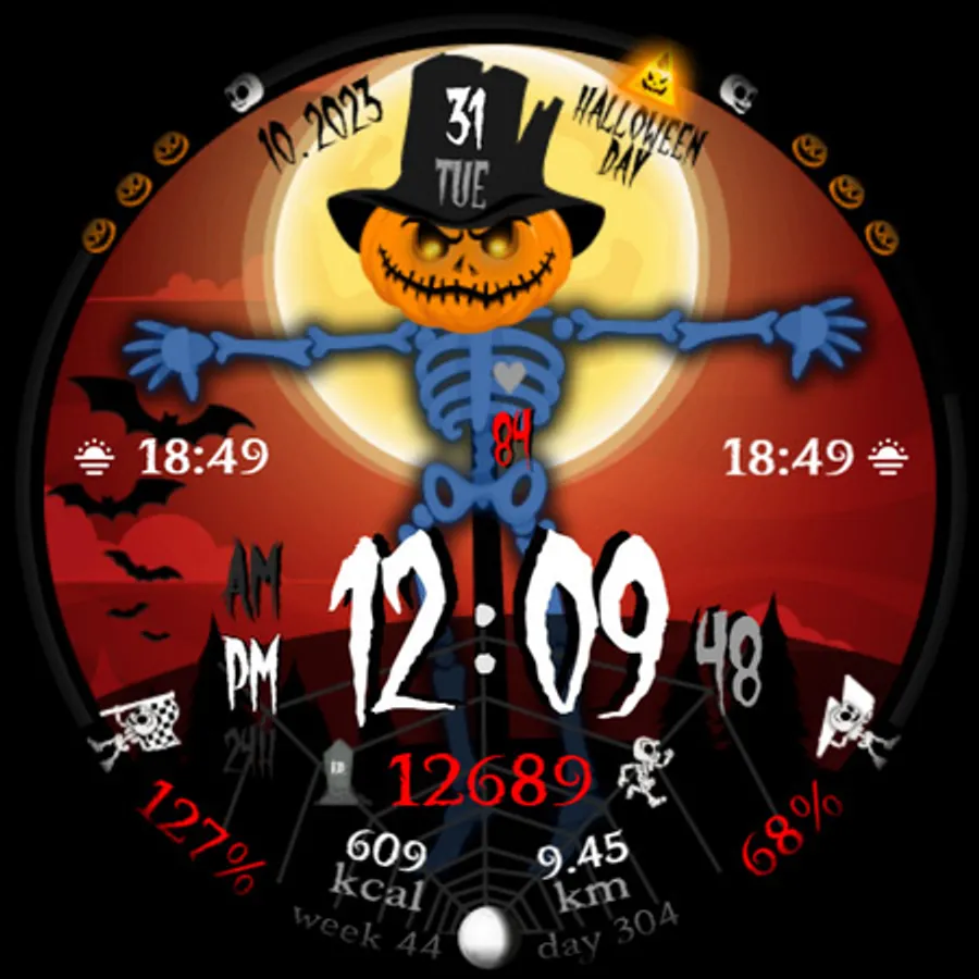 The spirit of Halloween comes to life as his heart begins to beat. Jack is watching you. With its enchanting design, this watch face captures the essence of Halloween and adds a touch of eerie charm to your wrist. It’s a delightful addition for those who embrace the magic and spookiness of Halloween all year round.