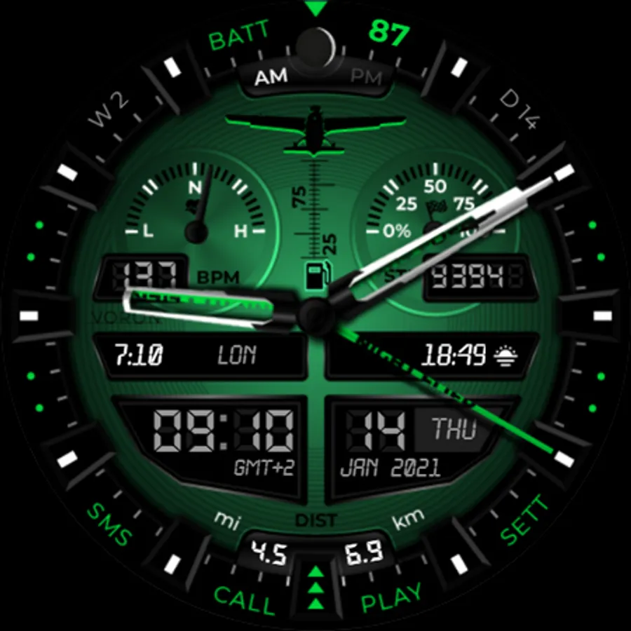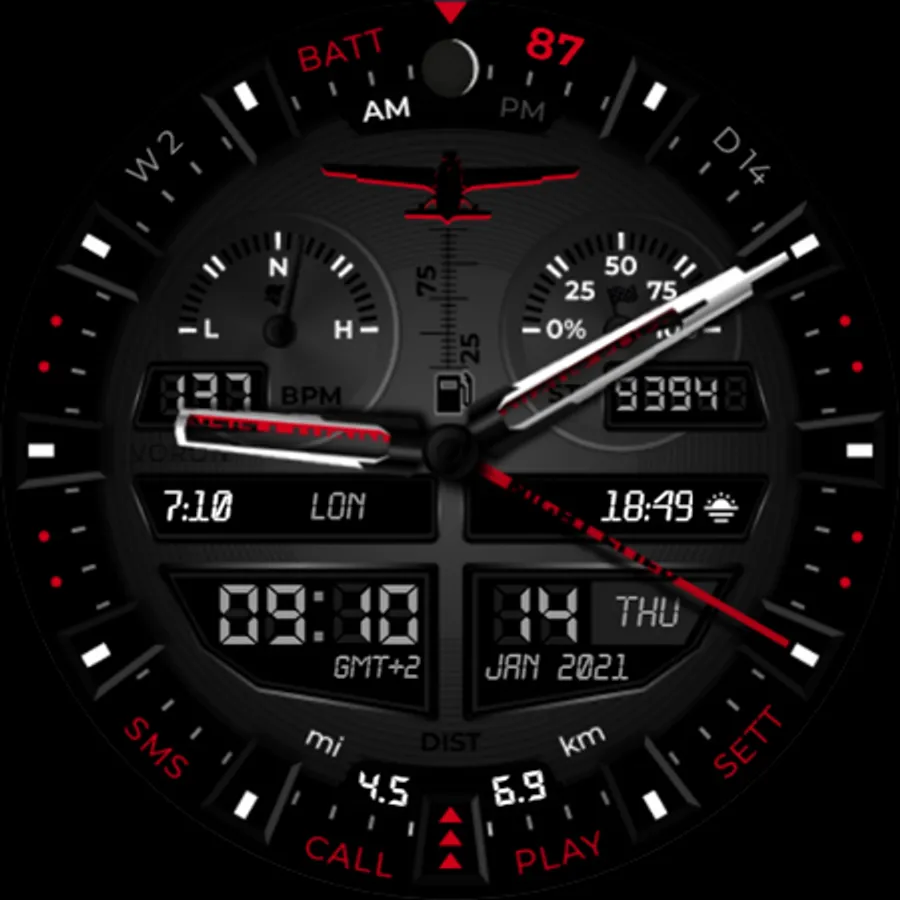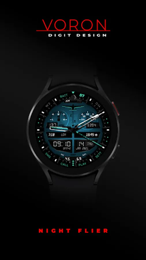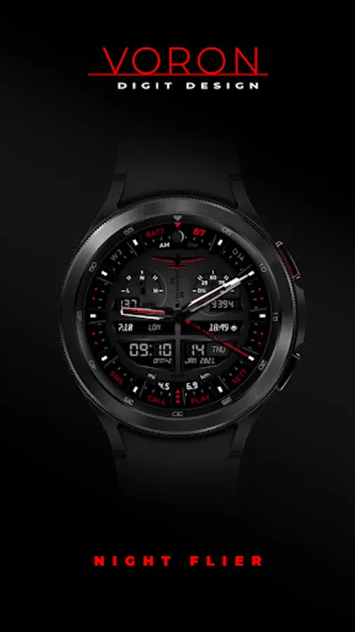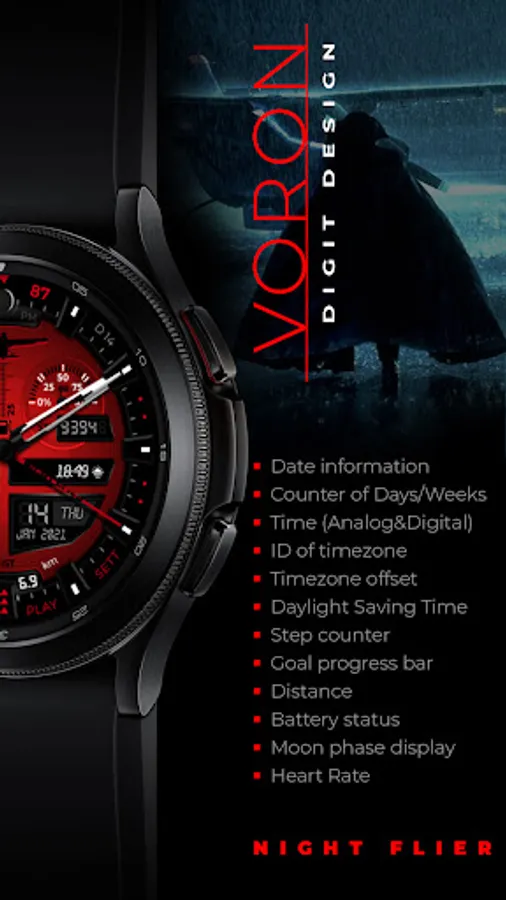 “NIGHT FLIER” INFORMATIVE HYBRID WATCH FACE
