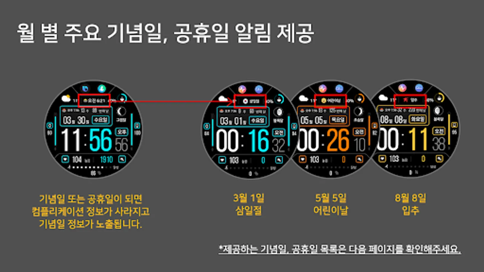 - 공휴일, 기념일 알림 *상세내용은 스크린샷 참조