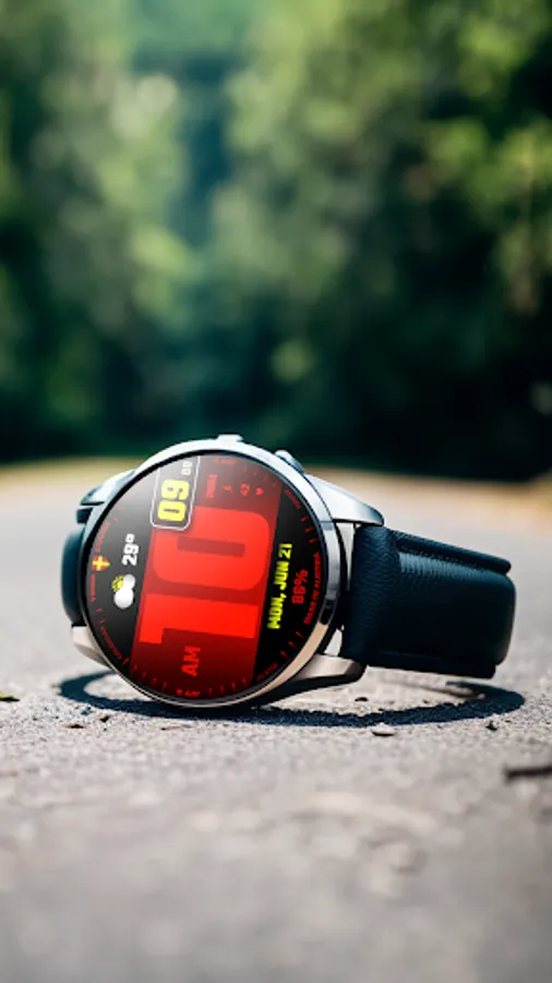 Digital Bold Cute Modern Minimal Design with Time, Weather, Temperature, Date, Day, Steps (Fitness & Health Parameter), Battery Level, AM/ PM or 24h Bold Digital Clean Display. You May Select Between Red, Blue, Green, Orange, Yellow & Gray / White Color. You may Find Time in the Top and Middle Part of the Watchface. This Watch Face is Simple & Easy to Read yet Strong and Clear. It Fits Almost Every (Fashion) Occasion in Spring, Summer, Autumn and Winter like Easter, Christmas, Different Holidays, Sport Events (e.g. Diving, Fisch, Flower, Ocean, Sea) and other. It is Suitable for Woman and Man. Please, Download It and Make You Happy. Wear OS Watch Face.