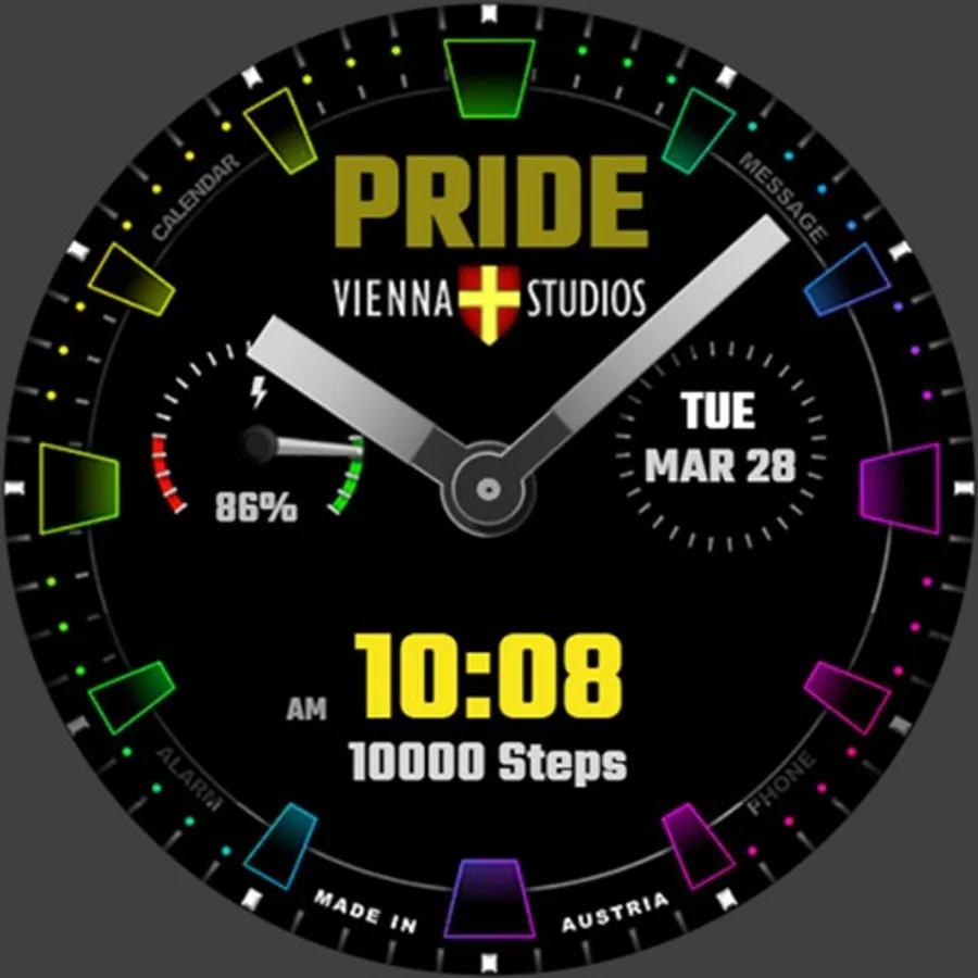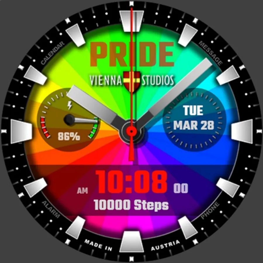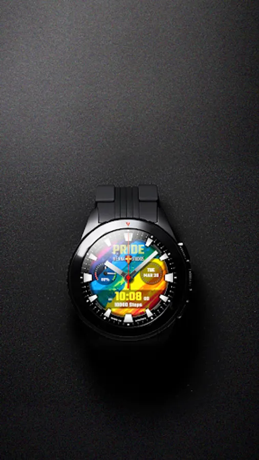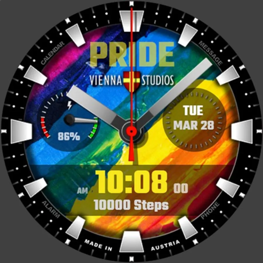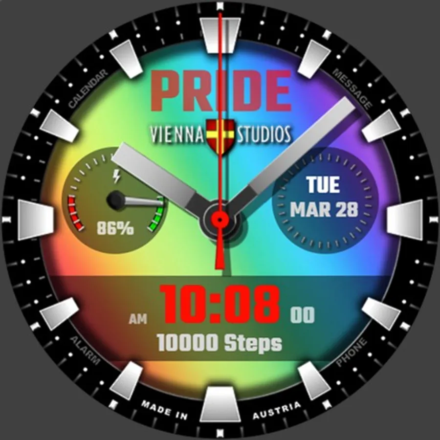 Analog & Digital Bold Cute Modern Minimal Design with Time, Date, Day, Steps (Fitness & Health Parameter), Battery Level, AM/ PM or 24h Bold Digital Clean Display. You May Select Between Time in Red, Blue, Green, Orange, Yellow & Gray / White Color. Other Elements use Mostly White and Gray Colors. You may Find PRIDE Text in the Top Part of The Watchface. This Watch Face is Simple & Easy to Read yet Strong and Clear. It Fits Almost Every (Fashion) Occasion in Spring, Summer, Autumn and Winter like Easter, Christmas, Different Holidays, Sport Events (e.g. Diving, Fisch, Flower, Ocean, Sea) and other. It is Suitable for Woman and Man. Please, Download It and Make You Happy. Wear OS Watch Face. LGBTI & Pride.