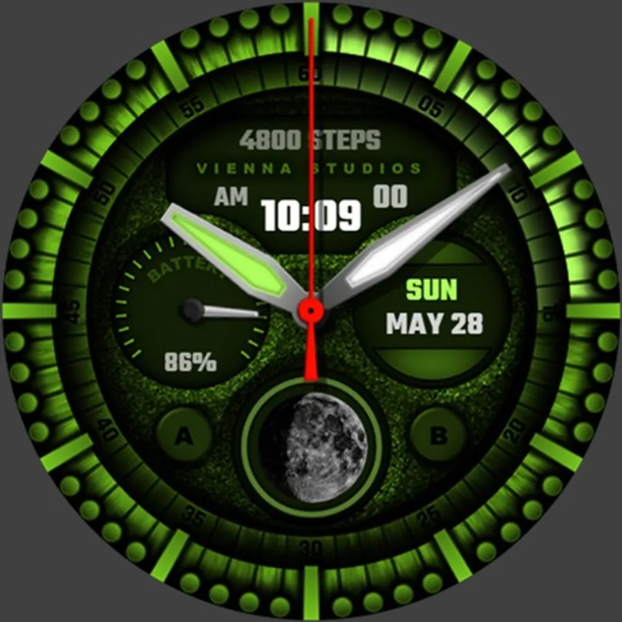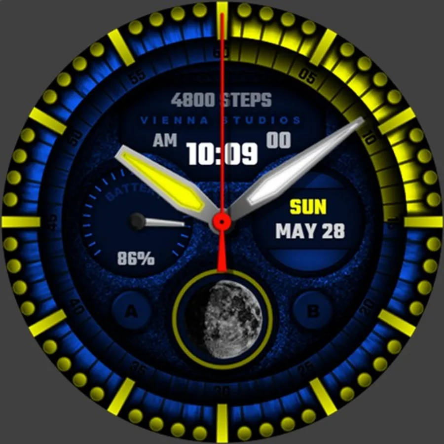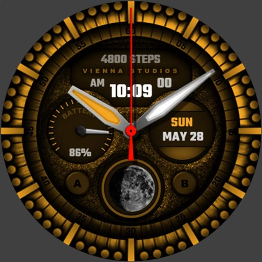 It contains time, date, day, steps (your fitness progress). VIENNA STUDIOS produced so far more than 4K Watch Faces at different platforms. All the gained expertise is flown into this watchface.