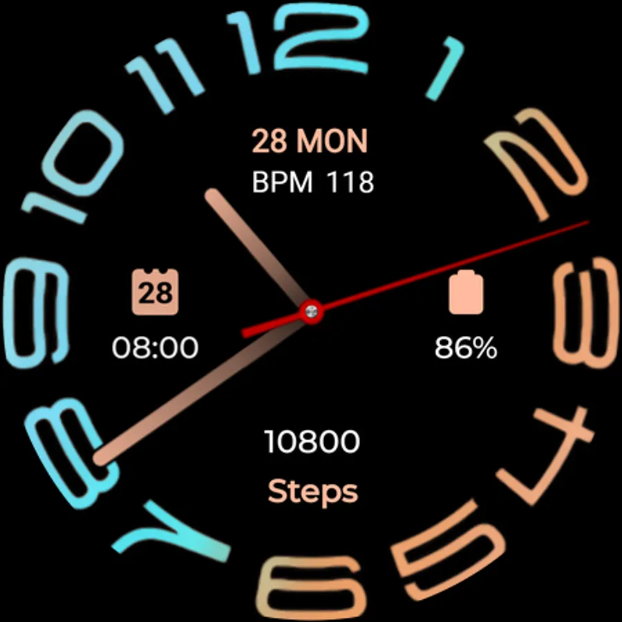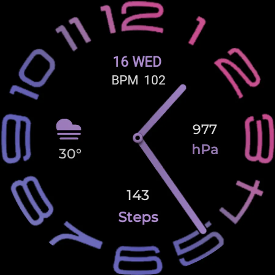 The watch face has by default non gradient customization also available and you can switch On the gradient styles On/Off very easily from customization menu option. Please read below how to do it and also other features of this watch face.