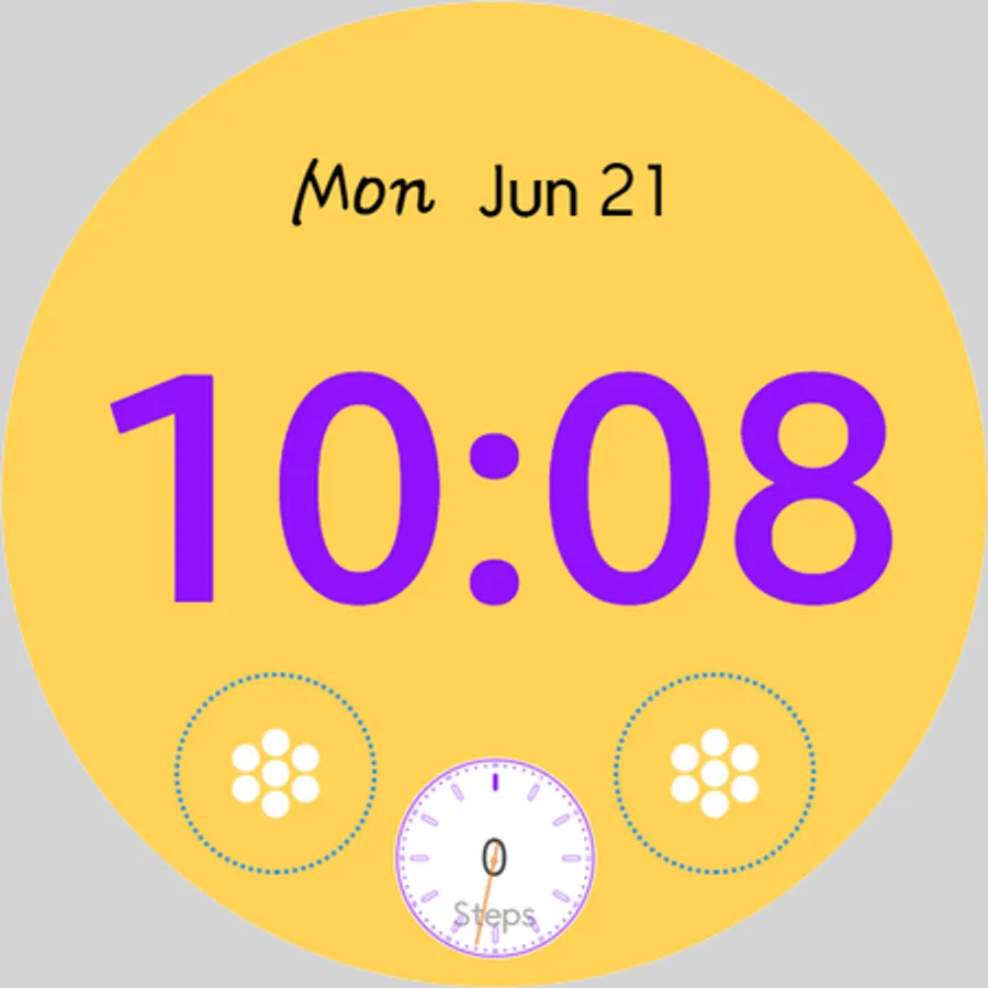 • 2 Customizable app shortcuts: Let it be Phone app, Play Store app, Alarm app, Settings or any of your favorite apps on devices, all them are at your service from watch face.