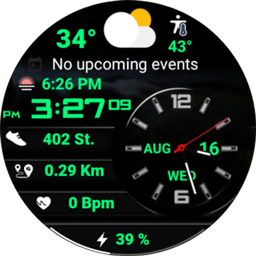 This watch face supports all Wear OS devices with API level 28 or higher.