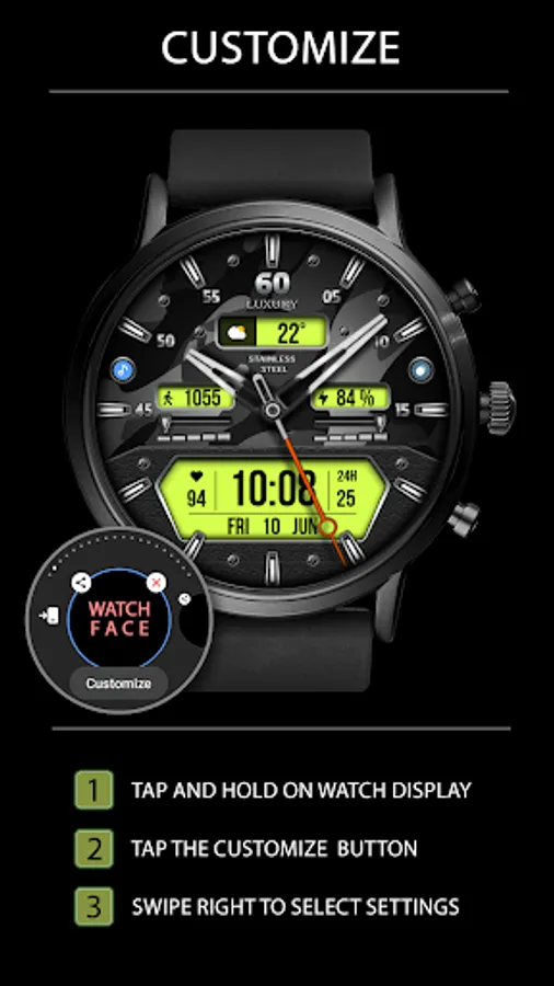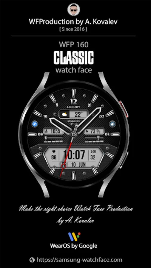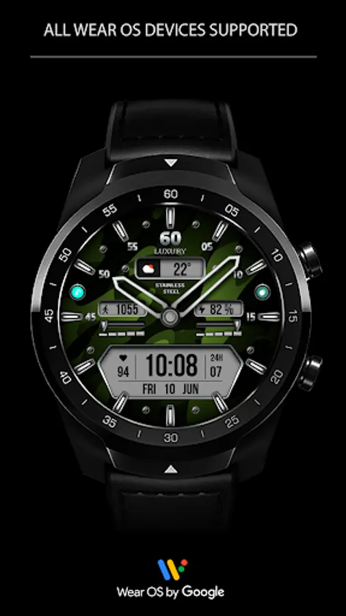 This watch face supports Wear OS devices with API Level 28+.